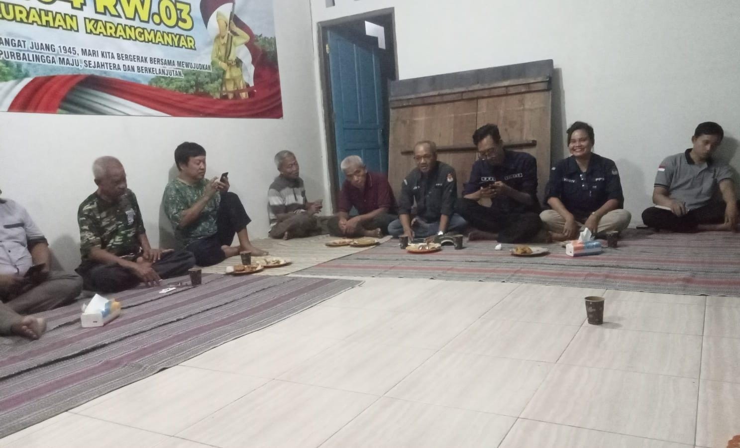 Purbalingga - PPS Kelurahan Karangmanyar melaksanakan Sosialisasi Pilkada Serentak 2024 pada hari Kamis (10/10/2024) pada kegiatan pertemuan rutin bapak-bapak di RT 04 RW III Perumahan Karangmanyar. Dihadiri oleh seluruh PPS Kelurahan Karangmanyar, ketua RT 04 RW III dan sebagian besar warga utamanya para bapak warga setempat.