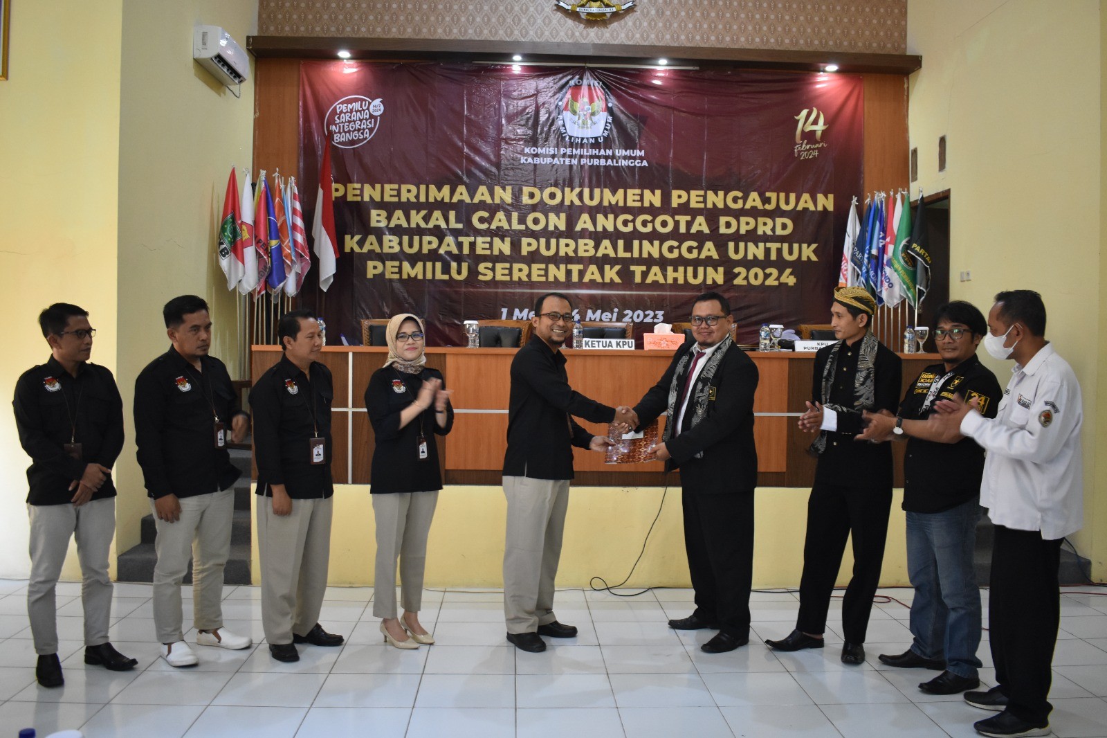 DPD Partai Ummat tercatat sebagai pendaftar pertama yang mendaftarkan bakal calon anggota DPRD pada pukul 09.06 WIB dan diikuti oleh DPD PKS pada pukul 13.08 WIB. Hadir dalam rombongan, Ketua, Sekretaris, Bendahara, pengurus DPD parpol, dan bacalon anggota DPRD. Rombongan pimpinan parpol diterima oleh Ketua KPU Kabupaten Purbalingga Eko Setiawan, ST beserta Anggota KPU dan segenap jajaran Sekretariat KPU Kabupaten Purbalingga. Acara diawali dengan penyampaian maksud dan tujuan kedatangan parpol ke KPU yang disampaikan oleh masing-masih Ketua DPD parpol. Dalam sambutan penerimaannya Eko menyampaikan ucapan selamat datang dan mengingatkan bahwa tahapan pencalonan merupakan tahapan penyelenggaraan pemilu. Eko juga menyampaikan harapannya pada parpol peserta Pemilu 2024 agar mensosialisasikan 14 Februari 2023 sebagai tanggal pemungutan suara kepada masyarakat. Acara penerimaan kemudian dilanjutkan dengan penjelasan kelengkapan dokumen pengajuan bacalon anggota DPRD oleh Ketua Divisi Teknis Penyelenggaraan Pemilu Zamaahsari, M.IP. Dalam penjelasannya, Zam menyampaiakan hal-hal apa saja yang menyebabkan pendaftaran dinyatakan diterima maupun tidak diterima.