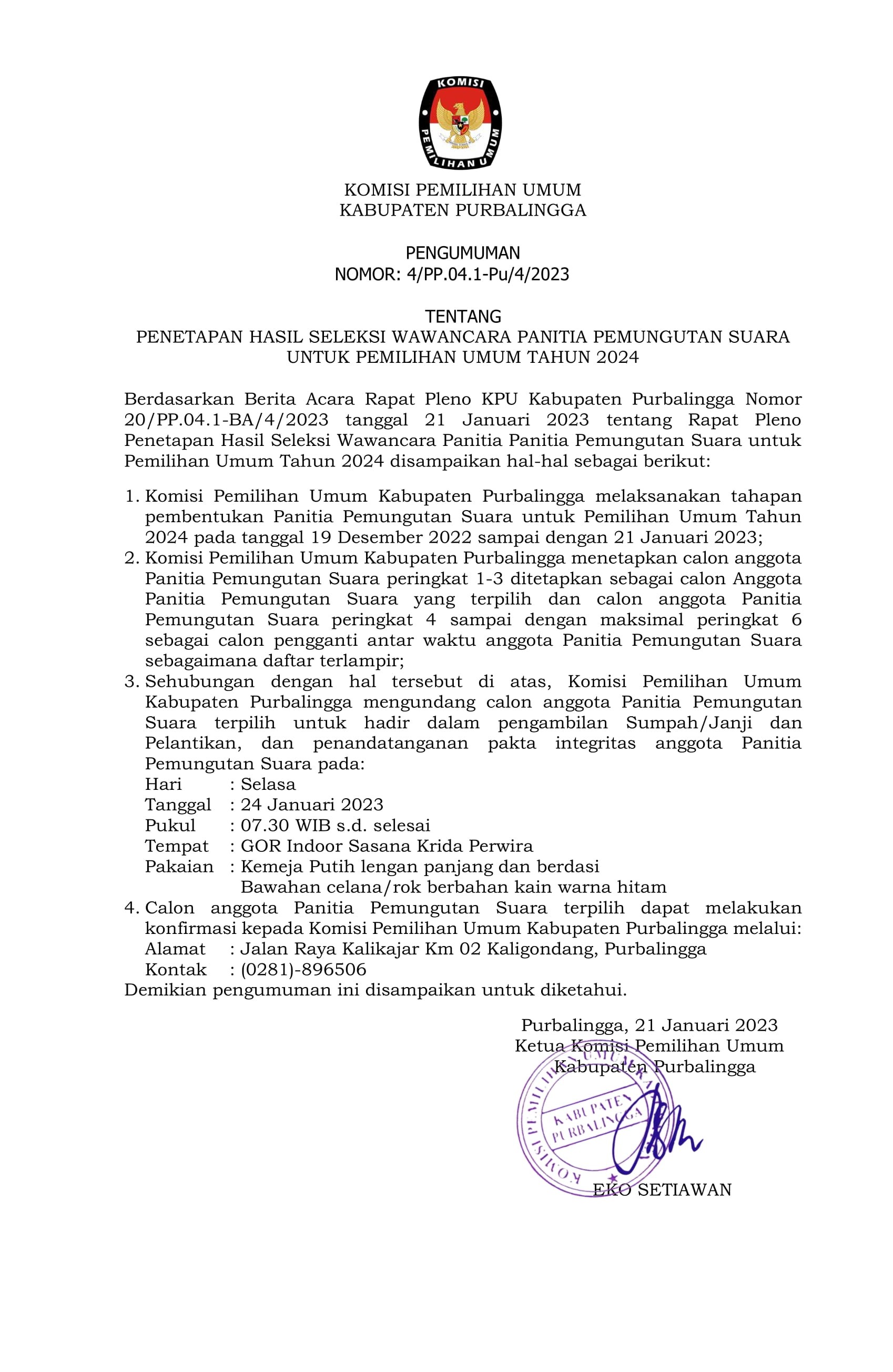 Pengumuman Hasil Seleksi Wawancara PPS Pemilu Tahun 2024