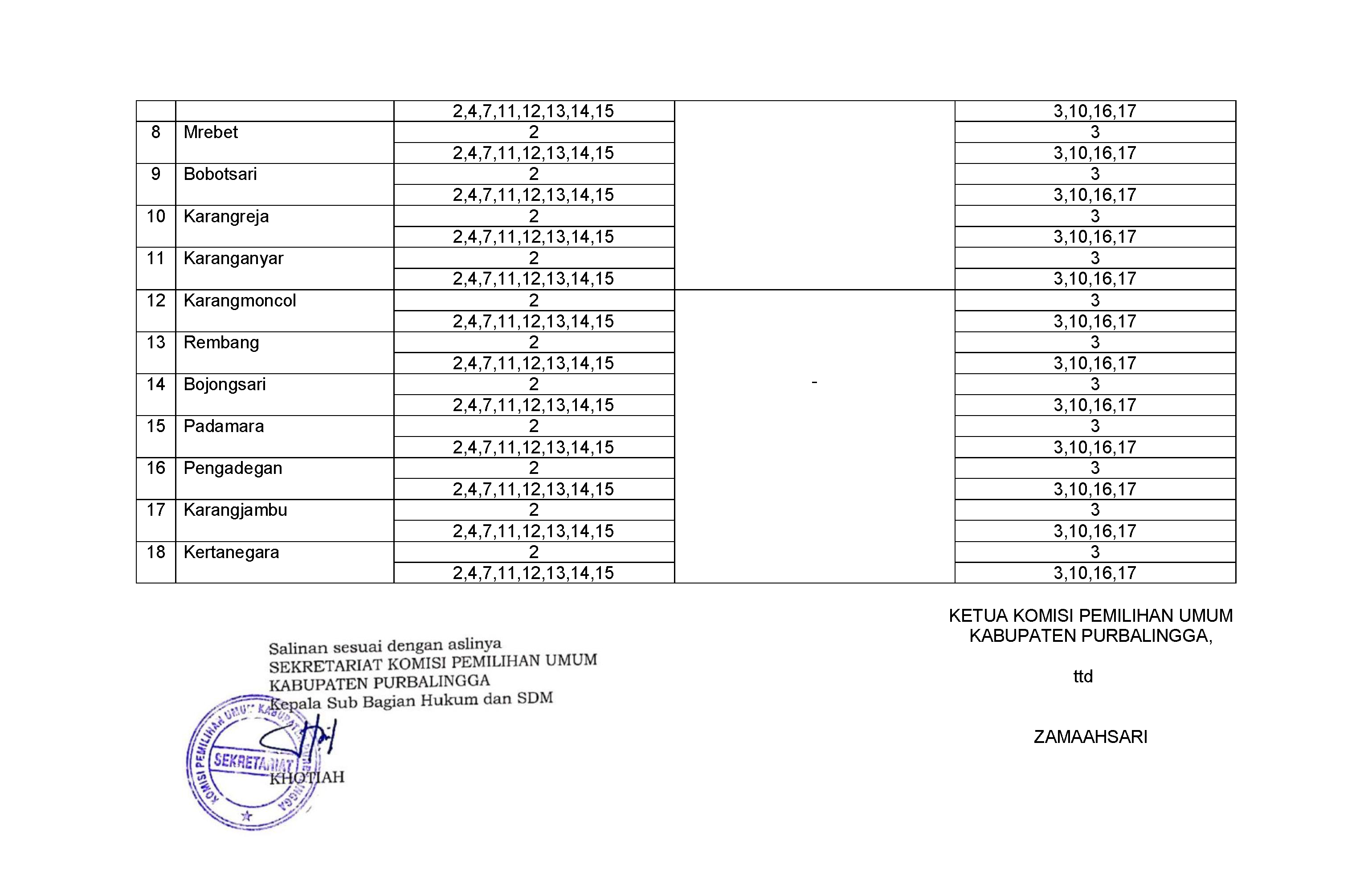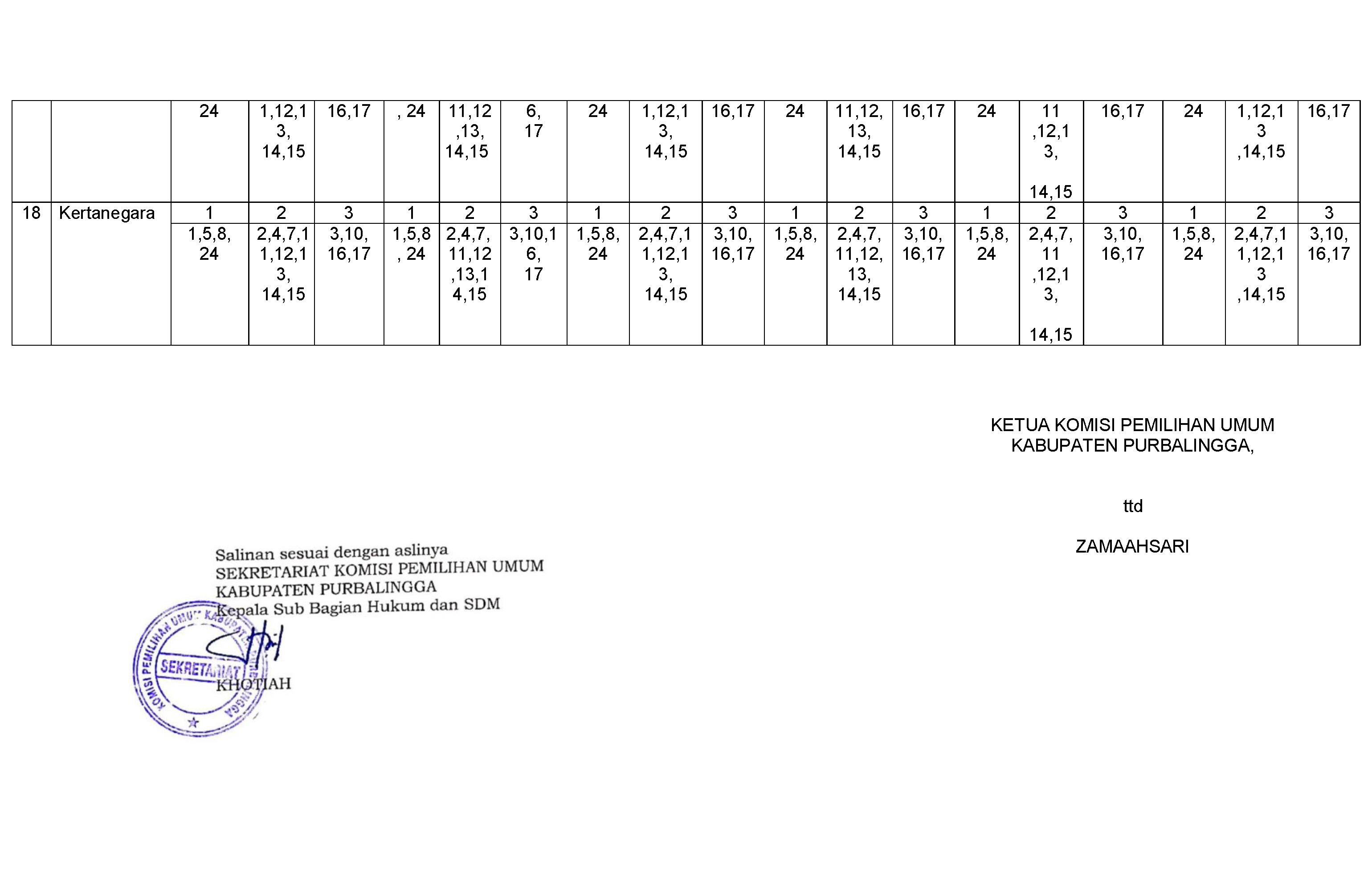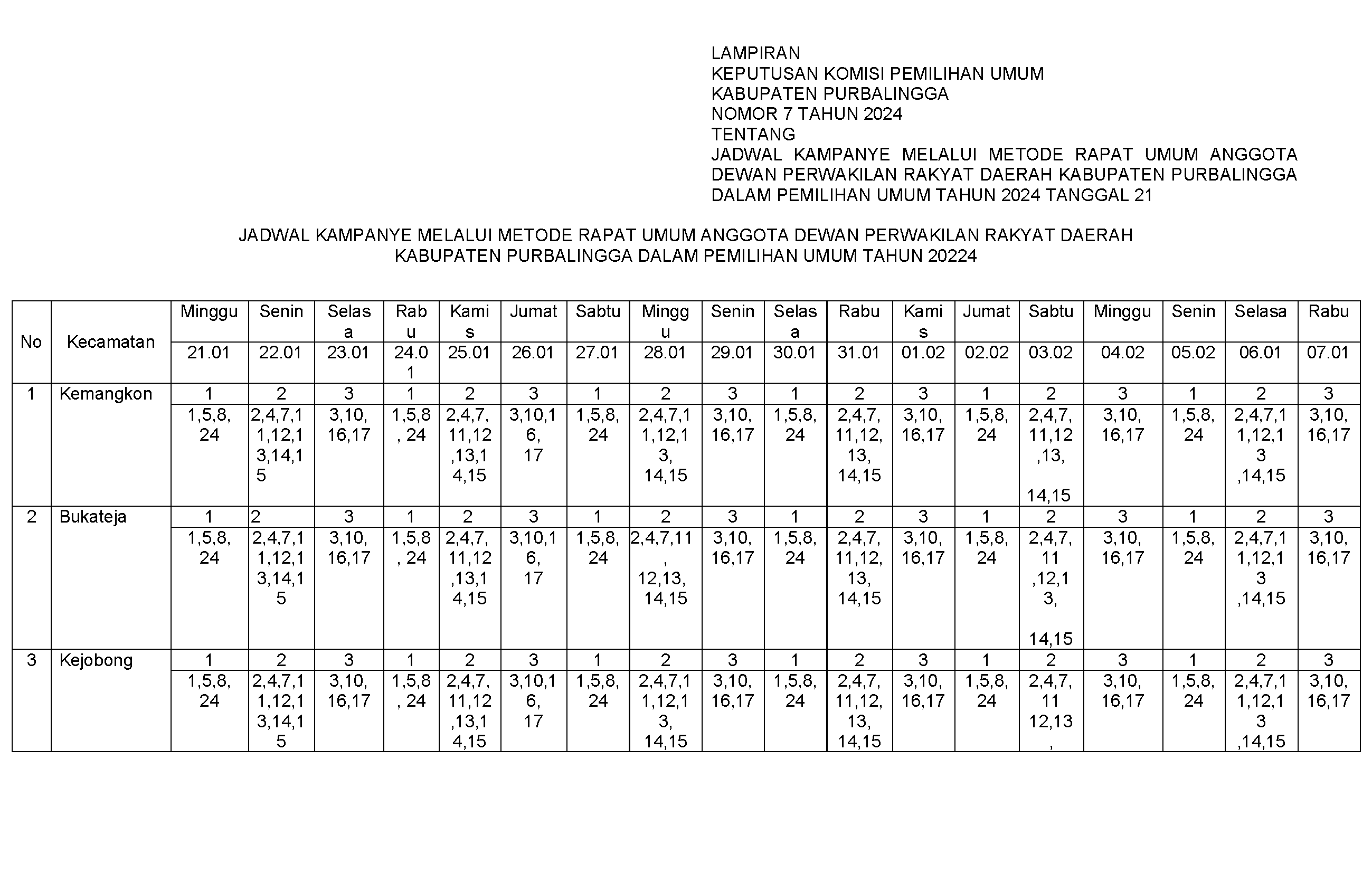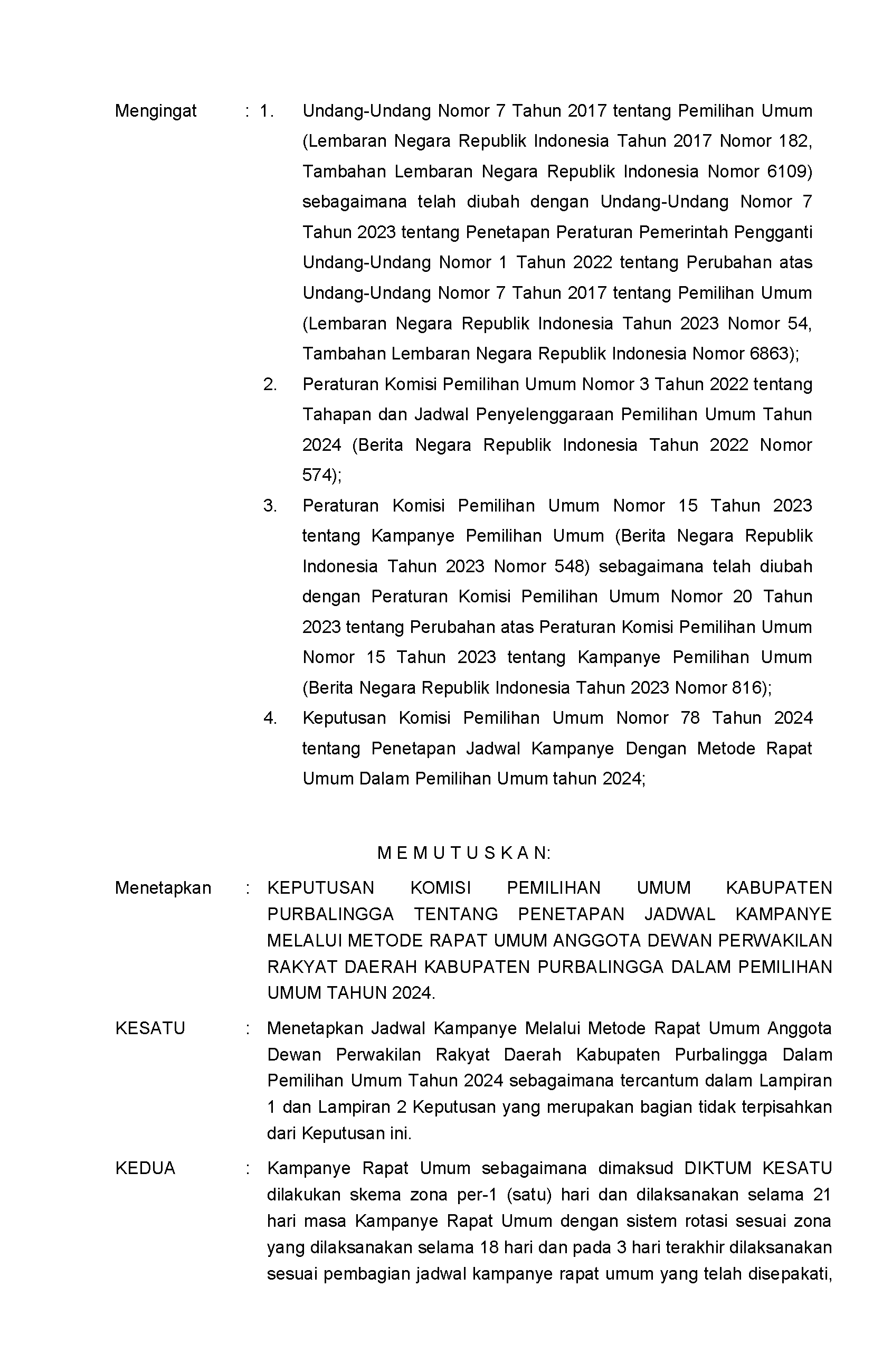 Keputusan Komisi Pemilihan Umum Kabupaten Purbalingga Nomor 7 Tahun 2024 tentang Penetapan Jadwal Kampanye Metode Rapat Umum Anggota Dewan Perwakikan Rakyat Daerah Kabupaten Purbalingga dalam Pemilihan Umum Tahun 2024 dapat diunduh disini.