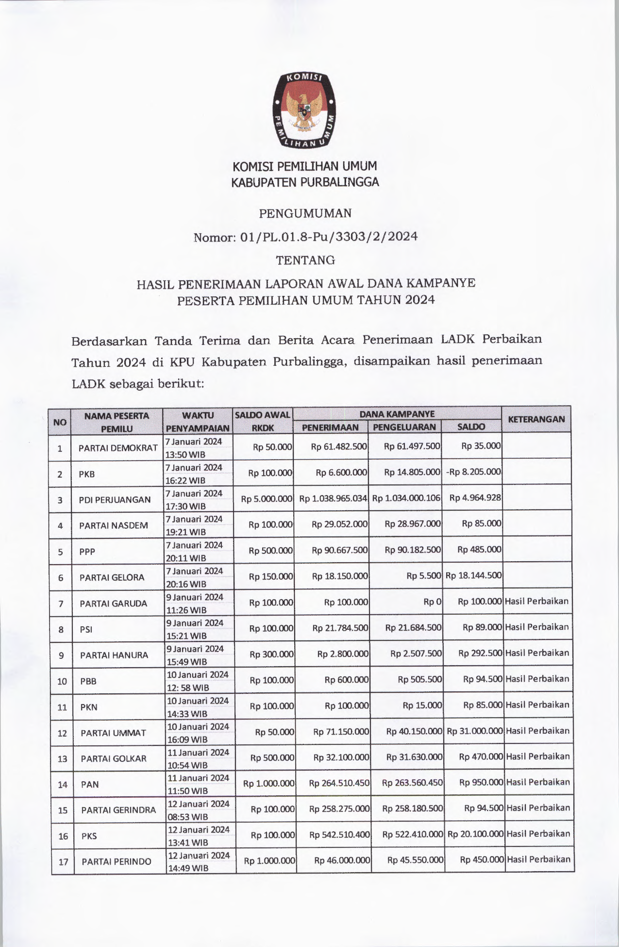 Pengumuman LADK Peserta Pemilu Tahun 2024