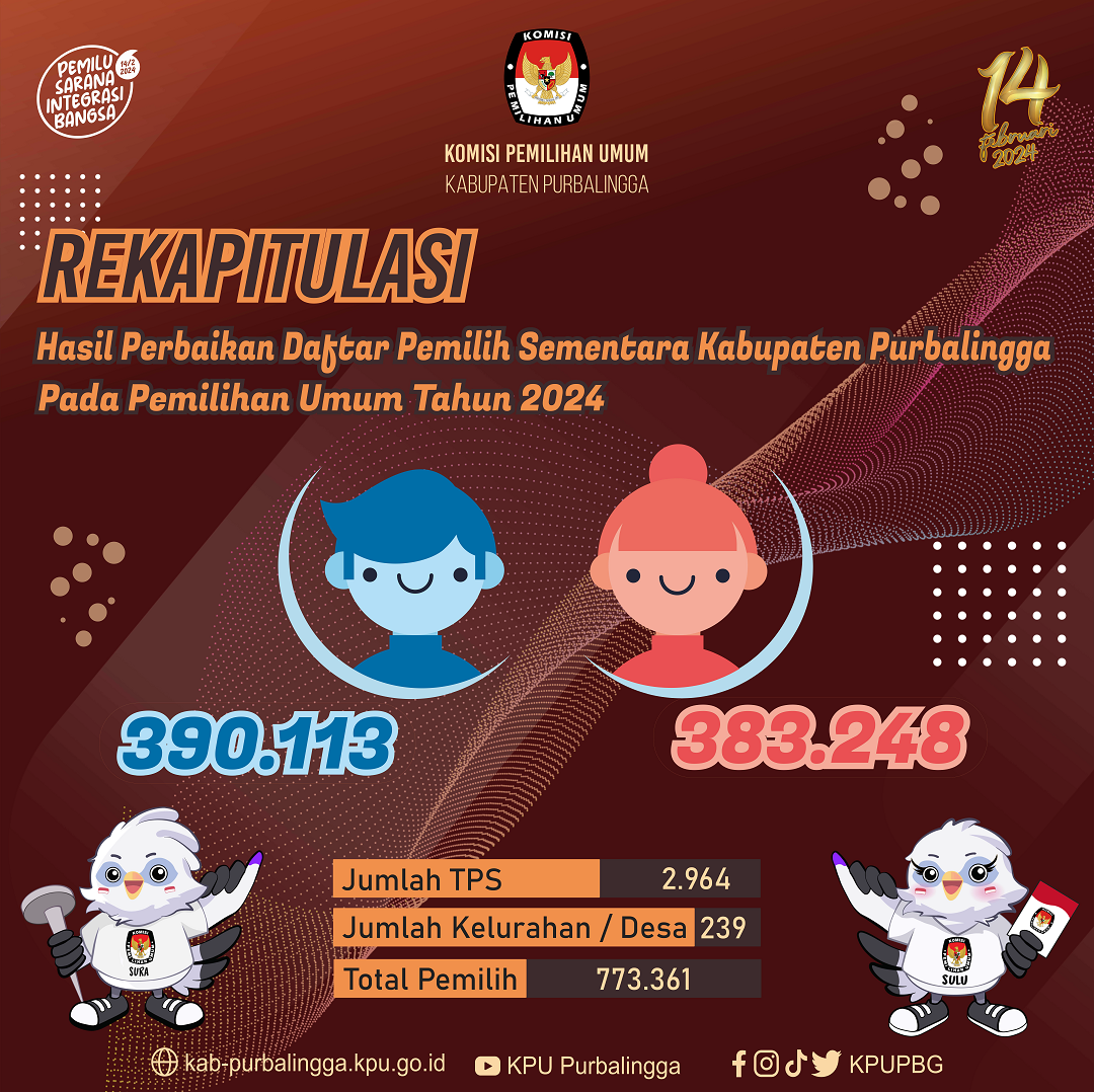 Rekapitulasi Hasil Perbaikan Daftar Pemilih Sementara (DPS) Kabupaten Purbalingga pada Pemilihan Umum Tahun 2024 dapat dakses di https://bit.ly/DPSHPKabPurbalingga.