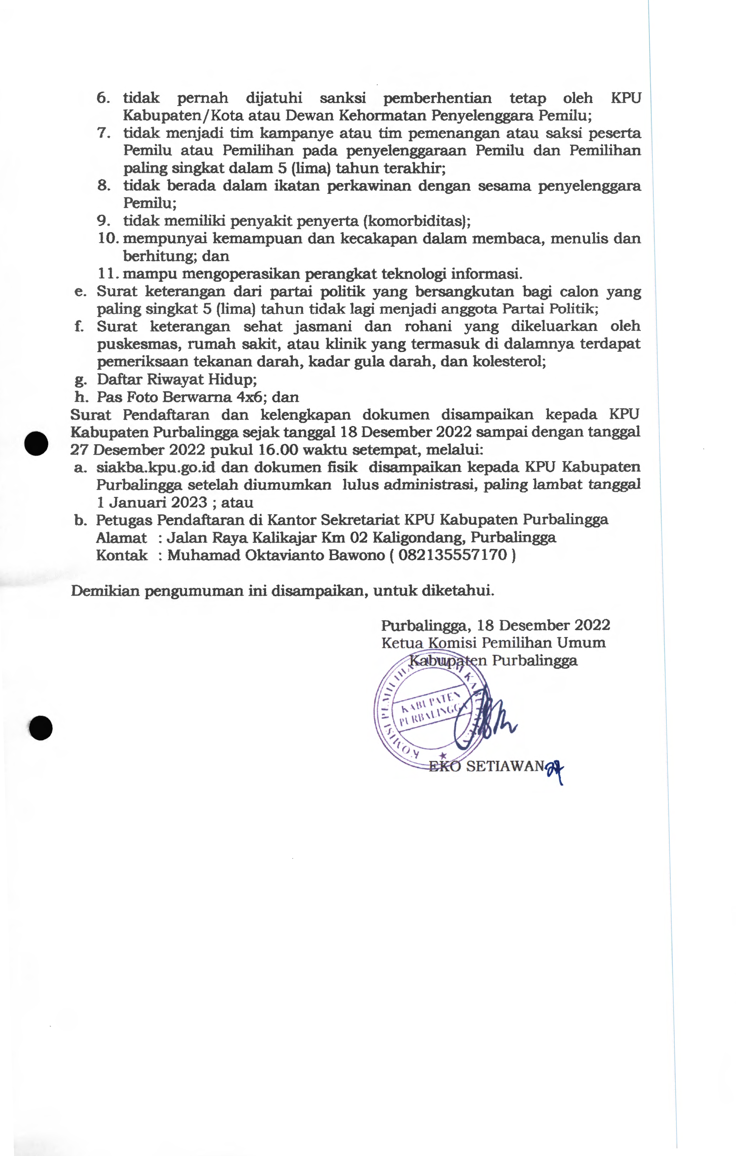 Pengumuman Seleksi Calon Anggota PPS untuk Pemilu Tahun 2024