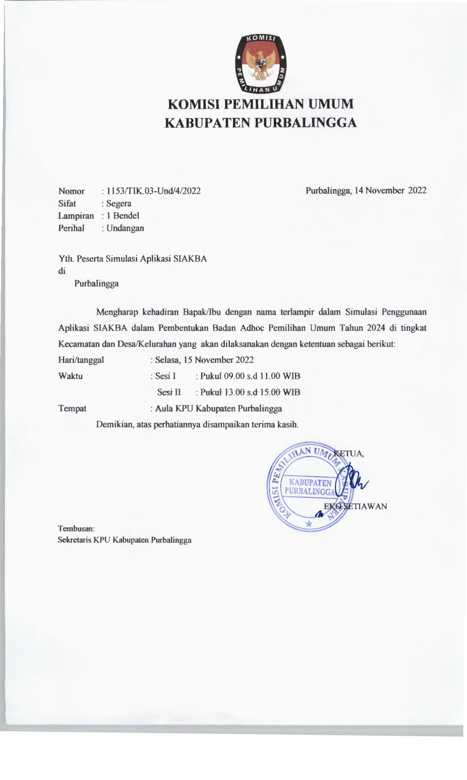 Undangan Simulasi SIAKBA Senin, 14 November 2022 15:00 453 Undangan Simulasi SIAKBA dapat diunduh disini. Bagikan: Telah dilihat 453 kali