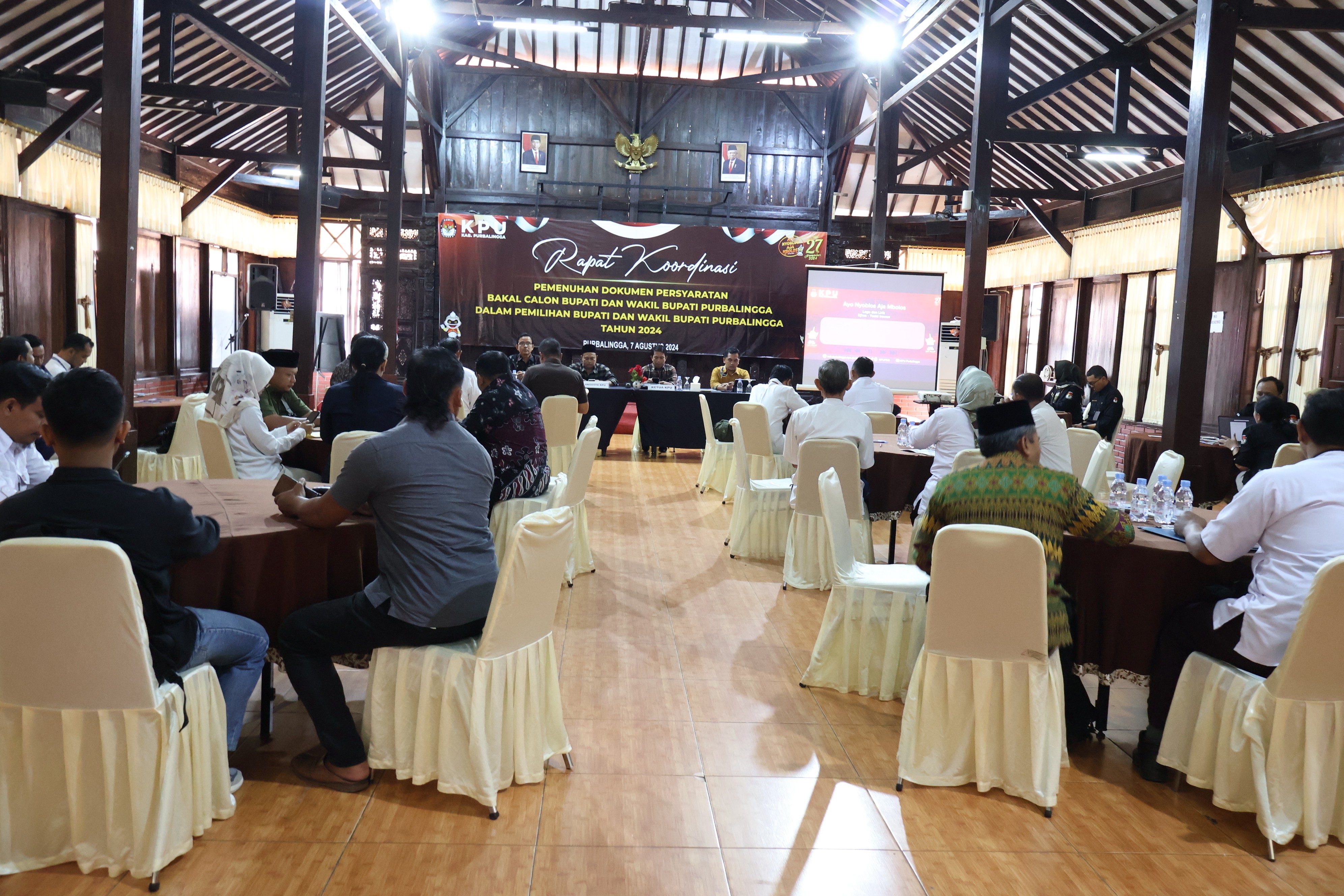 Rabu, 7 Agustus 2024, KPU Purbalingga melaksanakan Rapat Koordinasi terkait Pemenuhan Dokumen Persyaratan Bakal Calon Bupati dan wakil Bupati Purbalingga tahun 2024. Bertempat di Andrawina Room, Owabong – Bojongsari, Rakor dibuka langsung oleh Ketua KPU Purbalingga. Hadir dalam acara tersebut, Asisten Pemerintahan dan Kesra Setda Purbalingga, Kepala Kejaksaan Negeri Purbalingga, Polres Purbalingga, Rutan Kelas IIB Purbalingga, Bakesbangpol Purbalingga, Dinpendukcapil Purbaligga, Dinkes Purbalingga, BKPSDM Purbalingga, Dinpermasdes Purbalingga, Kemenag Purbalingga, Bawaslu Purbalingga, KPP Pratama Purbalingga dan Partai Politik yang memiliki kursi di parlemen Purbalingga.