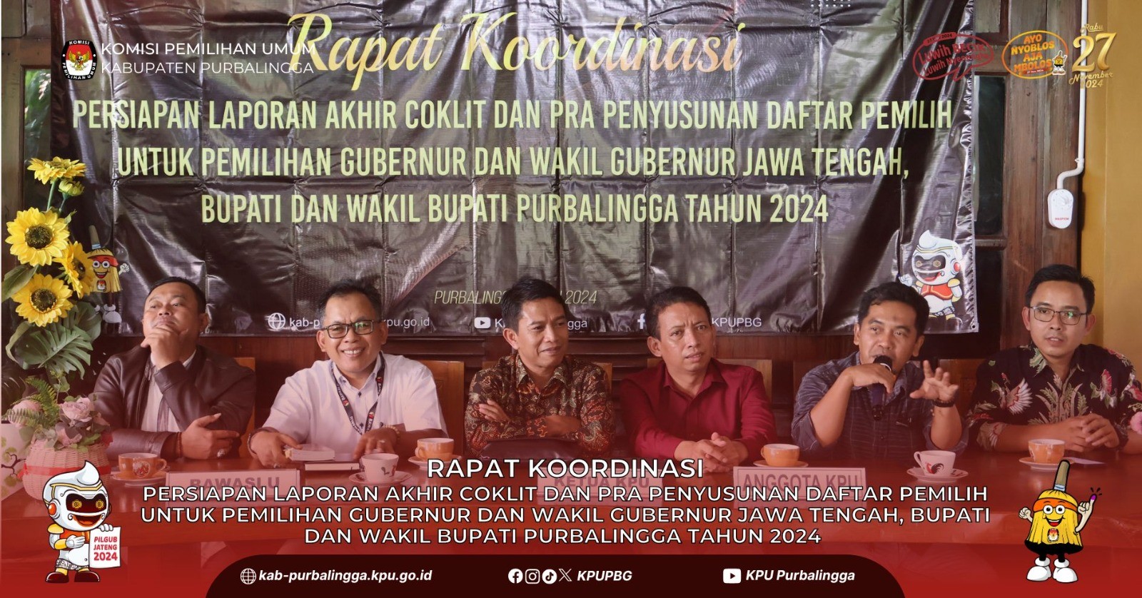 PURBALINGGA -- KPU Kabupaten Purbalingga menyelenggarakan Bimbingan Teknis Penyusunan Daftar Pemilih Hasil Pemutakhiran (DPHP) untuk Pemilihan Gubernur dan Wakil Gubernur Jawa Tengah, Bupati dan Wakil Bupati Purbalingga Tahun 2024 pada Kamis, 25 Juli 2024 bertempat di Andrawina Hall, Hotel Owabong Purbaligga. Hadir sebagai peserta dalam acara tersebut Ketua dan Anggota Panitia Pemilihan Kecamatan (PPK) yang membidangi pemutakhiran data pemilih se Kabupaten Purbalingga. Hadir pula dalam kegiatan tersebut Bawaslu Kabupaten Purbalingga dan Tim Pemeriksa Daerah DKPP Republik Indonesia sebagai narasumber. Kegiatan dibuka oleh Ketua KPU Kabupaten Purbalingga, Zamaahsari, S.IP., M.IP. yang menyampaikan bahwa validitas data merupakan elemen penting dalam proses penyusunan DPHP, terutama terkait penambahan pemilih dan perubahan status pemilih hasil pencocokan dan penelitian (coklit). Zam-zam juga menekan pentingnya untuk terus berkoordinasi dengan Panitia Pengawas Pemilu Kecanatan (Panwascam) sebelum nantinya dilaksanakan rapat pleno penyusunan DPHP. Tidak lupa juga Zam-zam menekankan kepada PPK untuk terus mengintensifkan sosialisasi terutama kepada stakeholder di tingkat kecamatan. Kegiatan selanjutnya dilanjutkan oleh penyampaian materi dari Tim Pemeriksa Daerah DKPP Republik Indonesia, Dr. Mohamad Hakim Junaidi, S.Ag., M.Ag. tentang Potensi Pelanggaran Etika dalam Penyusunan Daftar Pemilih Pilkada 2024. Hakim dalam materinya menyampaikan titik-titik yang harus diperhatikan oleh badan penyelenggara, baik PPK, PPS maupun Pantarlih dalam proses penyusunan daftar pemilih. Salah satunya adalah hubungan dengan pihak-pihak terkait dalam penyusunan daftar pemilih, seperti tim pasangan calon ataupun partai politik. Pasca penyampaian materi dilanjutkan dengan sesi tanya jawab antara peserta kegiatan dengan narasumber. Pasca ishoma, kegiatan dilanjutkan dengan penyampaian materi oleh Anggota KPU Kabupaten Purbalingga, Sudarmadi, S.IP. terkait proses teknis dan panduan pelaksanaan rapat pleno penyusunan DPHP berjenjang di PPS dan PPK. Rapat pleno penyusunan DPHP di tingkat PPS sendiri dijadwalkan dilaksanakan pada tanggal 1 - 3 Agustus 2024 dan dilanjutkan dengan rapat pleno di tingkat PPK pada tanggal 5 - 7 Agustus 2024 sesuai dengan Keputusan 799 Tahun 2024 tentang Petunjuk Teknis Penyusunan Daftar Pemilih dalam Penyelenggaraan Pilkada. Sudarmadi menyampaikan nanti akan ada instruksi dari KPU Republik Indonesia agar pelaksanaan rapat pleno penyusunan DPHP berjenjang dilaksanakan secara serentak pada masing-masing Kabupaten/Kota. Kegiatan kemudian dilanjutkan dengan proses unggah data hasil coklit ke dalam aplikasi Sidalih oleh masing-masing PPK dipandu oleh Admin Sidalih KPU Kabupaten Purbalingga, Dedi Budi Setiawan, S.IP. Kegiatan kemudian ditutup oleh Sudarmadi yang berpesan kepada PPK untuk terus menjalin komunikasi jika terjadi kendala dalam pelaksanaan tahapan.