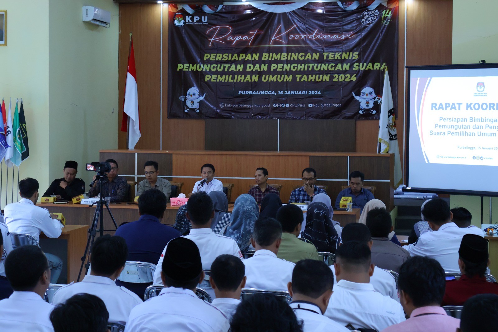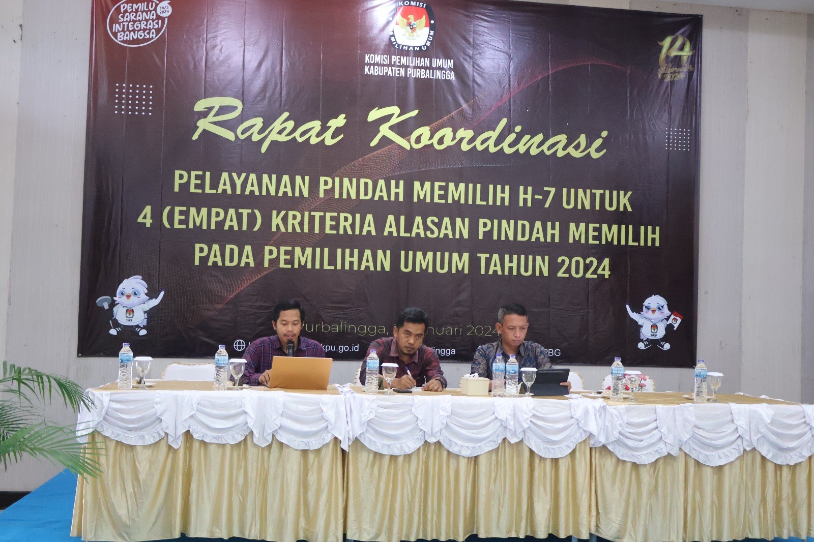 PURBALINGGA – Pemilihan Umum Tahun 2024 kurang dari 13 hari lagi. Segala persiapan terus dikebut untuk kelancaran Pemilihan tahun ini. Pada hari ini, Rabu, 31 Januari 2024, KPU Purbalingga menyelenggarakan Rapat Koordinasi dengan beberapa stakeholder guna menyelerasakan pemahaman terhadap tahapan-tahapan Pemilihan Umum. Bertajuk Rapat Koordinasi Pelayanan Pindah Memilih H-7 untuk 4 (empat) kriteria Alasan, Pemilihan Umum Tahun 2024. Rakor berjalan lancar. Adapun instansi yang diundang antara lain Kapolres, Dandim 0702, Danlanud JB. Soedirman, Kepala Kejaksaan Negeri Purbalingga, Kepala Rutan Kelas II B Purbalingga, Kepala Dinas KesehatanPurbalingga, Kepala BPBD Purbalingga, Kepala Bakesbangpol Purbalingga, Kepala Satpol PP Purbalingga, Ketua Bawaslu Purbalingga, Kepala Puskesmas dan Direktur Rumah Sakit. Acara dibuka langsung oleh Ketua KPU Purbalingga, Zamaahsari. Dalam sambutannya, Zam menyampaikan bahwa saat ini KPU Purbalingga telah memiliki lebih dari 20 ribu anggota KPPS (Kelompok Penyelenggara Pemungutan Suara). Sebanyak 2.964 TPS ditambah 1 TPS lokasi khusus yakni di Rutan kelas II B Purbalingga telah memiliki petugas. Hal ini menjadi dasar bahwa, KPU Purbalingga telah siap melaksanakan Pemilihan Umum. Acara dilanjutkan oleh materi yang disampaikan oleh Kadiv. Perencanaaan Data dan Informasi KPU Purbalingga, Sudarmadi. Dalam materi ini, Sudarmadi menyampaikan 4 (empat) kriteria alasan yang sampai saat ini masih bisa dilayani pindah memilihnya. Menurut pasal 210 UU No. 7 Tahun 2017 tentang Pemilihan Umum disebutkan bahwa pindah memilih dilaksanakan 30 hari sebelum Pemilihan. Putusan MK 2000 nomor 9, kecuali 4 kriteria alasan masih bisa diurus pindah memilih. Empat (4) kriteria alasan yang dimaksud antara lain menjadi tahanan Rutan, tertimpa bencana alam, menjalani rawat inap atau mendampingi rawat inap, dan bertugas di tempat lain, diluar domisilinya. KPU Purbalingga membutuhkan bantuan dari stakeholder dalam hal ini pihak Rumah sakit atau Puskesmas. Hal ini meminimalisir pegawai Rumah Sakit atau Puskesmas yang bertugas pada hari pemilihan dan tidak dapat menggunakan hak pilihnya pada pemilihan tahun ini. KPU Purbalingga juga akan berkoordinasi dengan Polres Purbalingga terkait adanya masyarakat yang ditahan di Polres Purbalingga. Sampai dengan saat ini, pelayanan pindah memilih dengan 4 (empat) kriteria alasan seperti diatas masih dapat dilakukan. Pemilih yang mengalami 4 (empat) kriteria alasan dapat mengurus pindah memilih di kantor desa atau kelurahan bersama PPS, kantor kecamatan bersama dengan PPK ataupun bisa mengajukan pindah memilih di KPU Purbalingga. [wr]