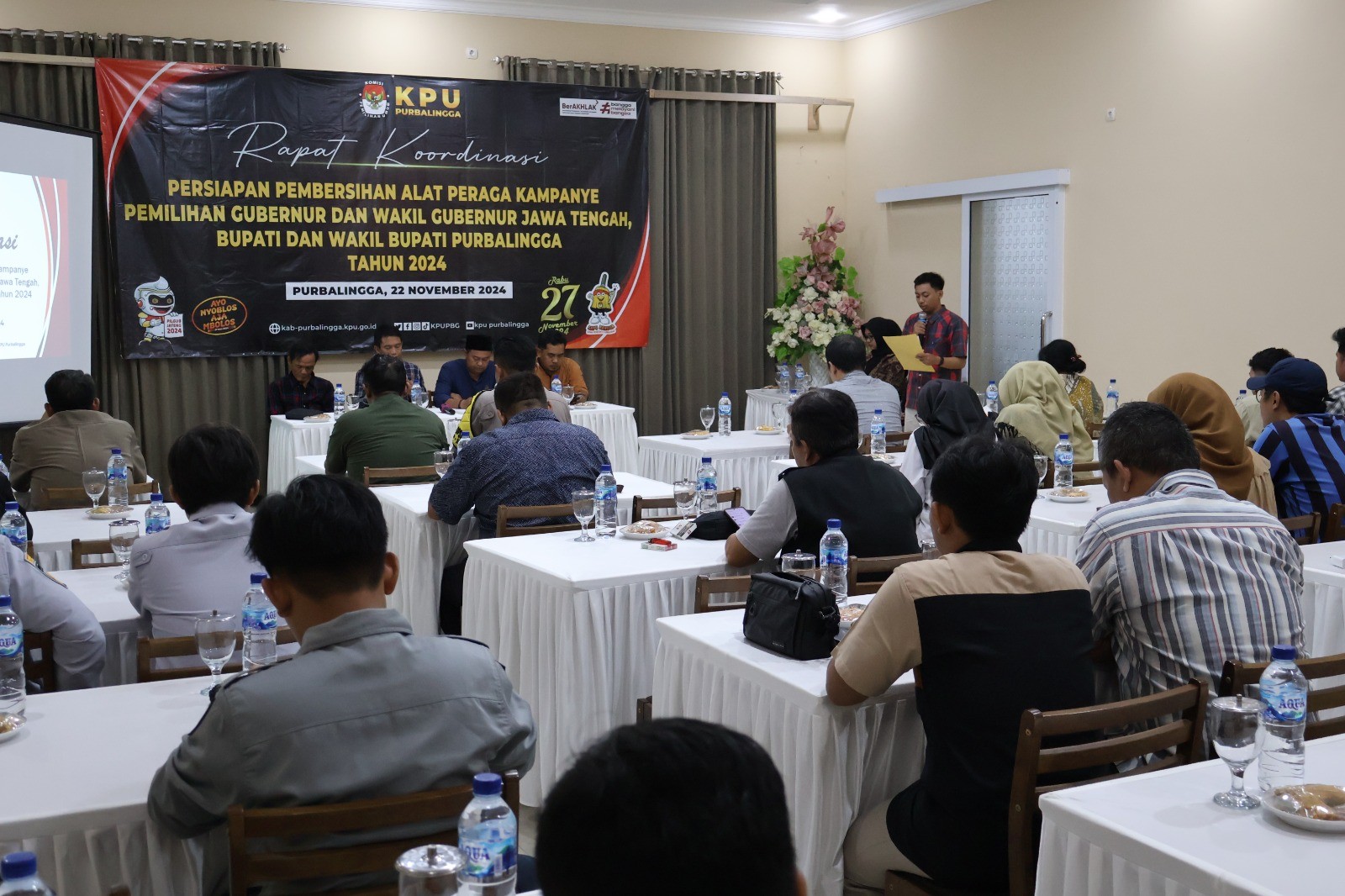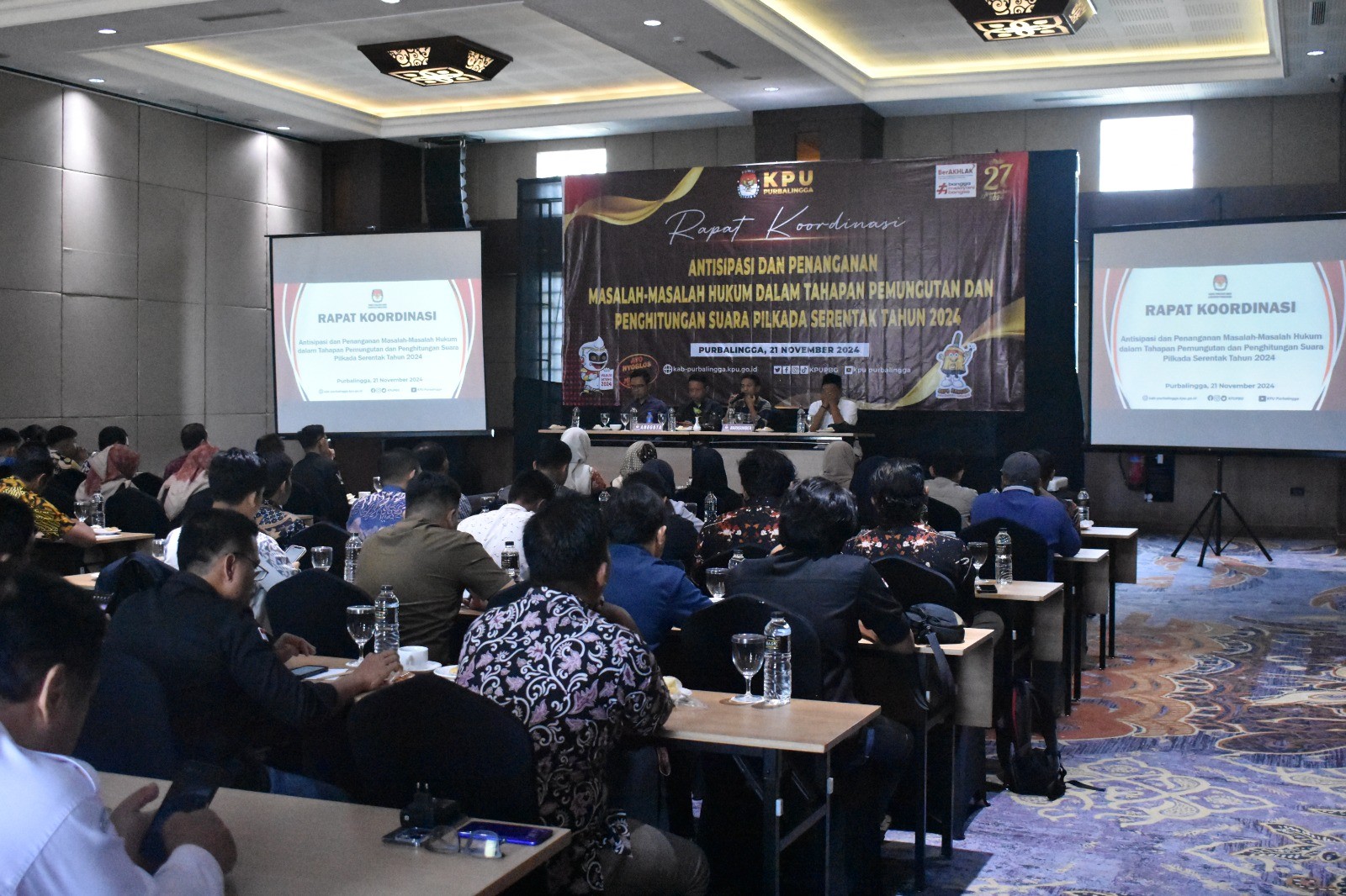 PURBALINGGA -- KPU Kabupaten Purbalingga menyelenggarakan Focus Group Discussion (FGD) Penyusunan Laporan Evaluasi Tahapan Pemilihan Bupati dan Wakil Bupati Purbalingga Tahun 2024 pada Rabu, 19 Februari 2025 bertempat di Bima Grand Ballroom, Braling Grand Hotel Purbalingga. Hadir dalam kegiatan tersebut Forkopimda Kabupaten Purbalingga, Bawaslu Kabupaten Purbalingga, Partai Politik se Kabupaten Purbalingga, serta instansi dan lembaga terkait. Kegiatan dibuka dengan sambutan Ketua KPU Kabupaten Purbalingga, Zamaahsari, S.IP., M.IP., yang menyampaikan bahwa kegiatan ini merupakan instruksi langsung dari KPU Republik Indonesia sebagai bentuk pengumpulan bahan evaluasi guna menciptakan laporan evaluasi yang komprehensif dalam menggambarkan pelaksanaan tahapan Pemilihan Serentak Tahun 2024. Kegiatan FGD ini dilaksanakan dalam rangka menggali perspektif hubungan kelembagaan serta faktor-faktor eksternal dalam penyelenggaraan Pemilihan Bupati dan Wakil Bupati Purbalingga Tahun 2024. Kegiatan kemudian dilanjutkan dengan acara inti, yaitu FGD dimoderatori oleh Kepala Subbagian Perencanaan dan Data Informasi KPU Kabupaten Purbalingga, Prima Intan Dessy Irianto, S.A.P. dengan didampingi dua orang fasilitator dari akademisi Universitas Jenderal Soedirman Purwokerto yaitu Ahmad Sabiq, S.IP., M.A. dan Dr. Sulyana Dadan. Pada sesi pertama, Ahmad Sabiq, S.IP., M.A. menjadi fasilitator dengan pembahasan terkait hubungan kelembagaan dalam perspektif identifikasi dan penyelesaian masalah dalam pelaksanaan Pemilihan Bupati dan Wakil Bupati Purbalingga Tahun 2024. Pada sesi tersebut dibahas permasalahan apa saja yang muncul dalam proses pelaksanaan tahapan, bagaimana proses penyelesaiannya yang disambung dengan penyusunan rekomendasi strategis sebagai hasil evaluasi pelaksanaan tahapan. Sesi kedua kemudian difasilitatori oleh Dr. Sulyana Dadan yang mengupas faktor-faktor eksternal apa saja yang berpengaruh pada proses pelaksanaan tahapan Pemilihan Bupati dan Wakil Bupati Purbalingga Tahun 2024. Sulyana mengevaluasi proses pelaksanaan tahapan dengan melihat kondisi perpolitikan di Kabupaten Purbalingga dan menyandingkan dengan budaya politik yang ada pada masyarakat. Kegiatan kemudian dilanjutkan dengan sesi diskusi antara peserta FGD dengan fasilitator dalam mengupas permasalahan apa saja yang menjadi penting untuk dicari akarnya untuk menjadi perbaikan dalam pelaksanaan Pemilihan Bupati dan Wakil Bupati Purbalingga selanjutnya. Kegiatan kemudian ditutup oleh Zam-zam yang berterimakasih kepada seluruh pihak yang terlibat dalam pelaksanaan tahapan Pemilihan Bupati dan Wakil Bupati Purbalingga Tahun 2024 dan berharap hasil FGD ini bisa menjadi rujukan untuk pembuat kebijakan dalam mempersiapkan Pemilu ataupun Pemilihan Serentak selanjutnya.