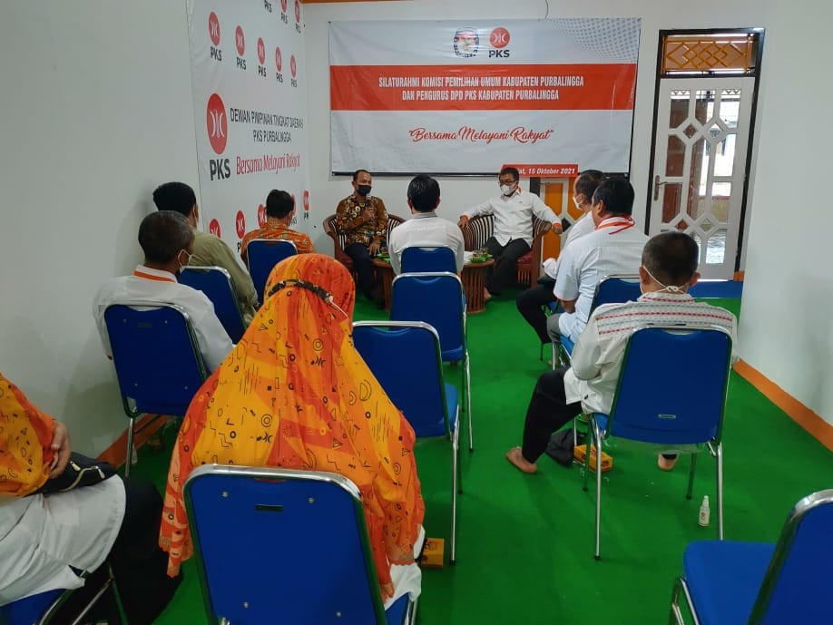 PURBALINGGA – Komisi Pemilihan Umum (KPU) Kabupaten Purbalingga melakukan kunjungan ke Kantor Dewan Pimpinan Daerah (DPD) Partai Keadilan Sejahtera (PKS) Kabupaten Purbalingga pada Jum'at (15/10). Kunjungan ini merupakan kunjungan kelima KPU Kabupaten Purbalingga ke partai politik di tingkat Kabupaten Purbalingga dalam rangka silaturahmi dan mendiskusikan tentang kegiatan Pendidikan Pemilih yang akan diselenggarakan bersama seluruh Parpol di Kabupaten Purbalingga. Kegiatan Sosialisasi Pendidikan Politik kepada masyarakat akan menggandeng pengurus partai politik yang dilaksanakan secara daring maupun luring. KPU Kabupaten Purbalingga berharap semua partai politik dapat berpartisipasi sebagai narasumber dan para pemirsa yang merupakan warga Kabupaten Purbalingga dapat memperoleh wawasan dan pengetahuan sebagai wujud pendidikan politik. Pada saat kunjungan, Ketua dan Anggota KPU Kabupaten Purbalingga disambut dengan baik oleh Ketua DPD Partai Keadilan Sejahtera Kabupaten Purbalingga Bapak Cahyo Susilo, A.Md. beserta seluruh jajaran pengurus dengan berdialog tentang kegiatan kepemiluan yang sedang maupun yang akan dilaksanakan ke depan.