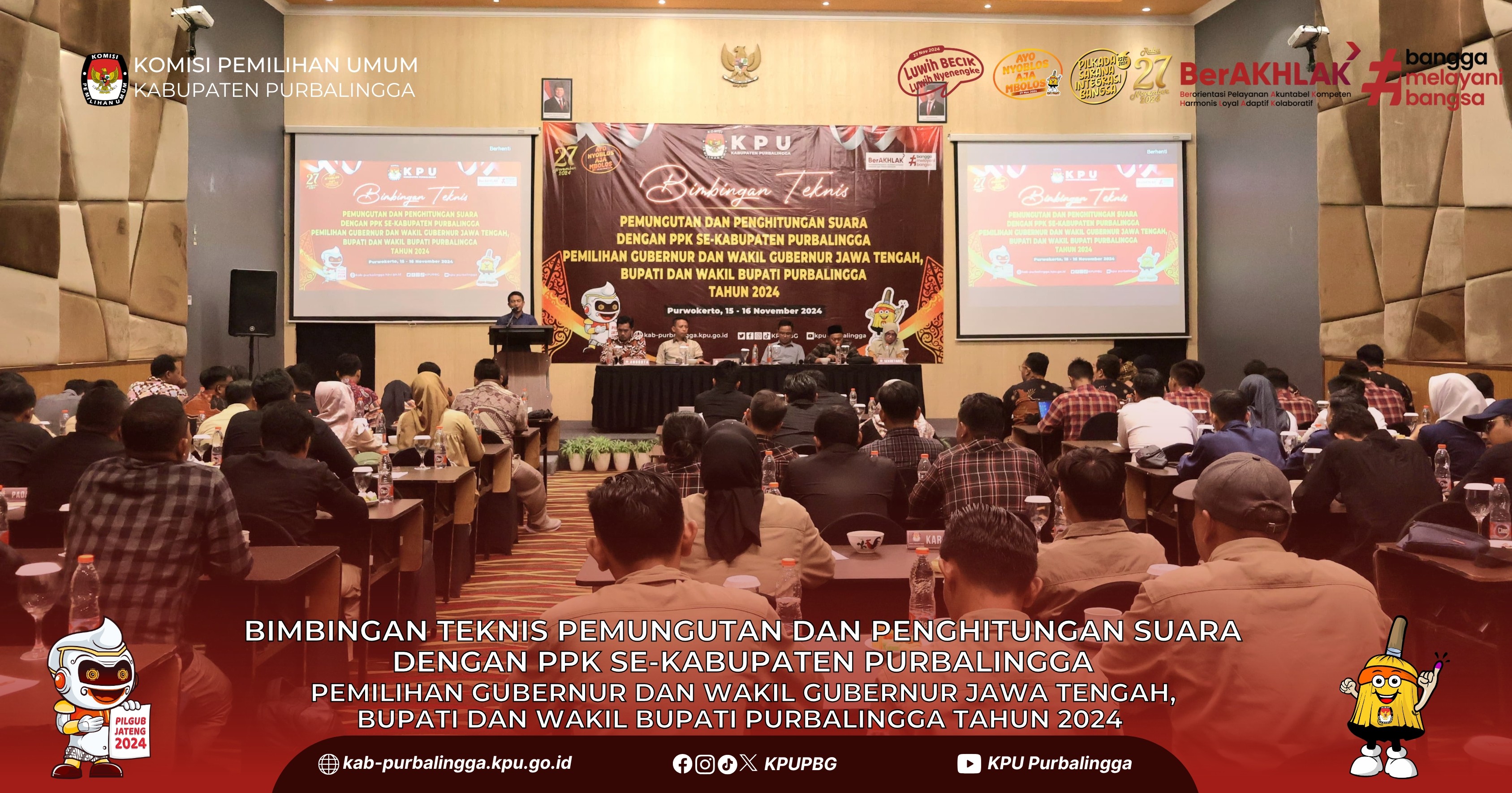 Purbalingga -- KPU Kabupaten Purbalingga telah melaksanakan Bimbingan Teknis Pemungutan dan Penghitungan Suara dengan PPK Se-Kabupaten Purbalingga pada Pemilihan Gubernur dan Wakil Gubernur Jawa Tengah, Bupati dan Wakil Bupati Purbalingga Tahun 2024 bertempat di Meotel Purwokerto pada Jumat, (15/11/2024) s/d Sabtu, (16/11/2024). Kegiatan yang dihadiri oleh 90 PPK dari 18 kecamatan ini, dibuka oleh Ketua KPU Purbalingga Zamaahsari, S.IP.,M.I.P. Dalam sambutannya, pria yang akrab disapa Zamzam ini, mengatakan bahwa tahapan pemungutan dan penghitungan suara sudah sangat dekat, sehingga kita perlu lebih disiplin dan mempelajari aturan yang ada." "Tahapan kita sudah kurang dari 12 hari lagi, kita juga sudah dapat PKPU 17 tahun 2024, banyak pertanyaan yang muncul dan perlu kita jawab bersama-sama dalam Bimtek hari ini." Ia menambahkan bahwa selain PKPU, nanti kita juga perlu membaca Keputusan KPU yang sebentar lagi akan turun, karena juknis yang lebih detil akan muncul di sana. "PKPU yang telah turun memang masih umum, dan kita menunggu juknis yang akan diturunkan dalam bentuk Keputusan KPU". tambahnya. Selain itu, Ia juga mengingatkan tentang netralitas penyelenggara demi membangun trust publik terhadap penyelenggaraan Pilkada 2024. "Hak pilih hanya bisa digunakan pada saat hari H pemilihan, semua teman-teman PPK harus memperhatikan soal netralitas, jangan sampai ada yang main-main, kita sama-sama jaga soal ini," tegas Zam. Sementara itu, Sekretaris KPU Kabupaten Purbalingga Mundarti, SH menjelaskan tentang desain anggaran untuk pembuatan TPS. "Pada hari H kita akan menurunkan anggaran untuk keperluan TPS dan KPPS. Kami juga akan menurunkan logistik, sehingga PPK juga harus bersiap-siap. PPK yang akan melanjutkan ke PPS lalu ke TPS." jelas Mundarti. Ia juga menambahkan bahwa anggaran yang diturunkan tergolong besar sehingga perlu dicermati dengan hati-hati RAB nya. Demikian pula dengan SPJ nya harus tepat dan sesuai. Catur Sigit Prastyo selaku Ketua Divisi Teknis Penyelenggaraan menyampaikan mengenai kegiatan yang akan dilaksanakan selama dua hari ke depan. Sudarmadi selaku Ketua Divisi Perencanaan Data Informasi menyampaikan mengenai perkembangan pendaftaran akun Sirekap KPPS. Sementara Kadiv Hukum dan Pengawasan Dr. Imam Nurhakim mengingatkan mengenai C Kejadian Khusus karena penting sekali peranannya. "Form Kejadian Khusus sering kali kosong, tidak ditulis, jadi sering kali tidak bisa jadi alat bukti pada saat sengketa di Mahkamah Konstitusi." kata Imam. Menurut Imam, PPK perlu memitigasi masalah-masalah yang mungkin muncul sehingga mudah mengantisipasinya. Widyo Wibowo selaku Kadiv Sosdiklih Parmas menambahkan mengenai pentingnya kekompakan, komunikasi dan menjaga kesehatan agar siap dalam menghadapi tahapan puncak Pilkada 2024. Ia juga menambahkan bahwa harkat martabat penyelenggara terletak pada integritasnya. Oleh karena itu, jangan sampai kehilangan integritas. "Untuk saat ini kita harus bisa menahan diri, dan menjaga diri, jaga harkat dan martabat kita sebagai penyelenggara" tutup Widyo. Anggota Bawaslu Purbalingga Wawan Eko Mujito juga turut hadir dan menyampaikan bahwa tata cara dan prosedur yang dikerjakan KPPS harus sesuai dengan PKPU. "Tugas kami adalah mengawasi, kami pun sudah memetakan kerawanan pemungutan dan penghitungan suara. Mulai dari hari tenang, APK harus sudah bersih. Pembentukan TPS harus sesuai aturan. Begitu juga tata cara dan prosedur saat dimulai pemungutan, pengitungan dan penutupannya kami awasi." jelas Wawan. Di samping materi dari Anggota KPU Purbalingga, Bimtek ini juga diisi oleh dua narasumber eksternal yakni Ketua KPU Purbalingga periode 2018-2023, Eko Setiawan, ST dan Kabag Tata Pemerintahan Setda Kabupaten Purbalingga Juli Atmadi.