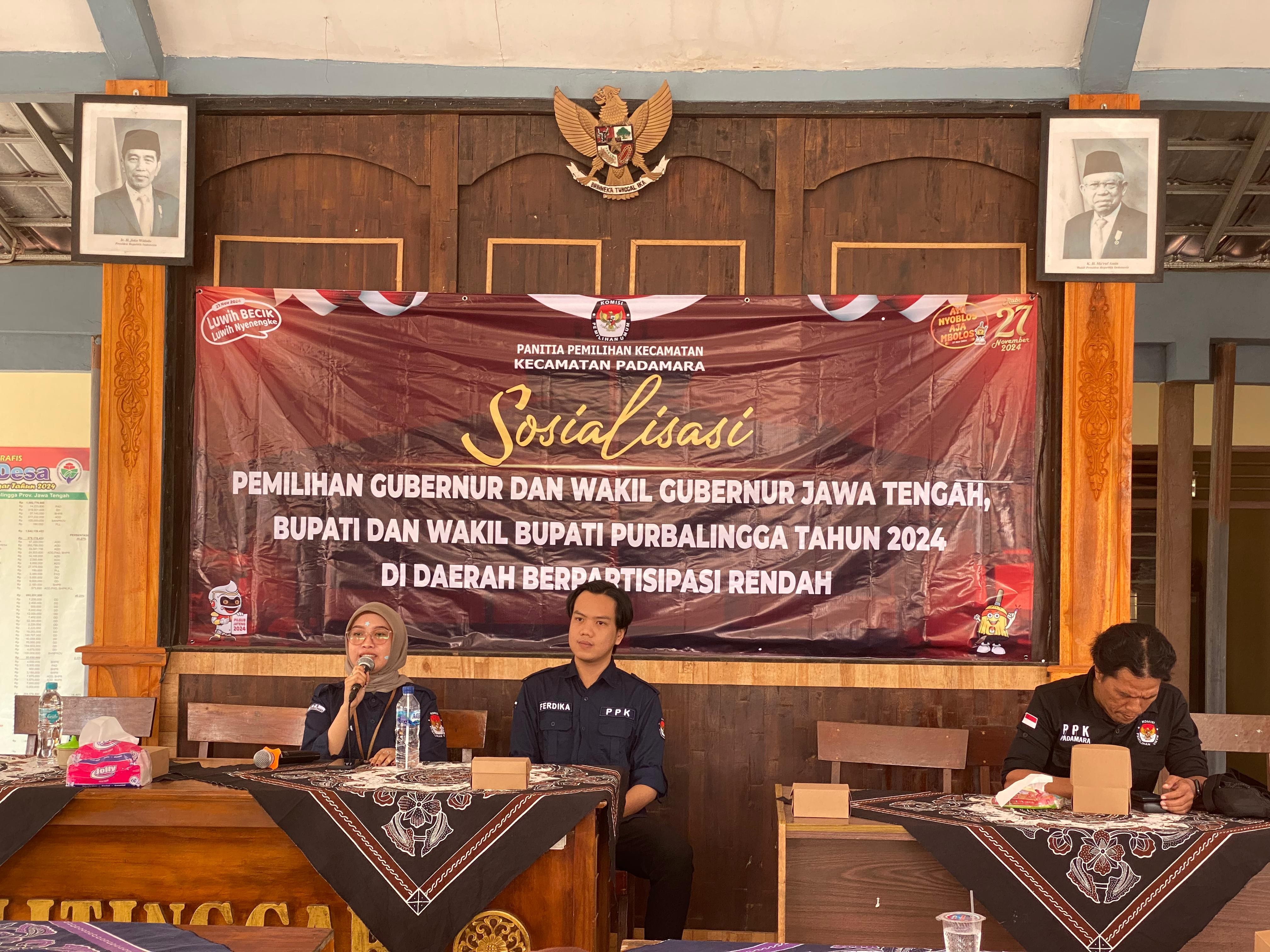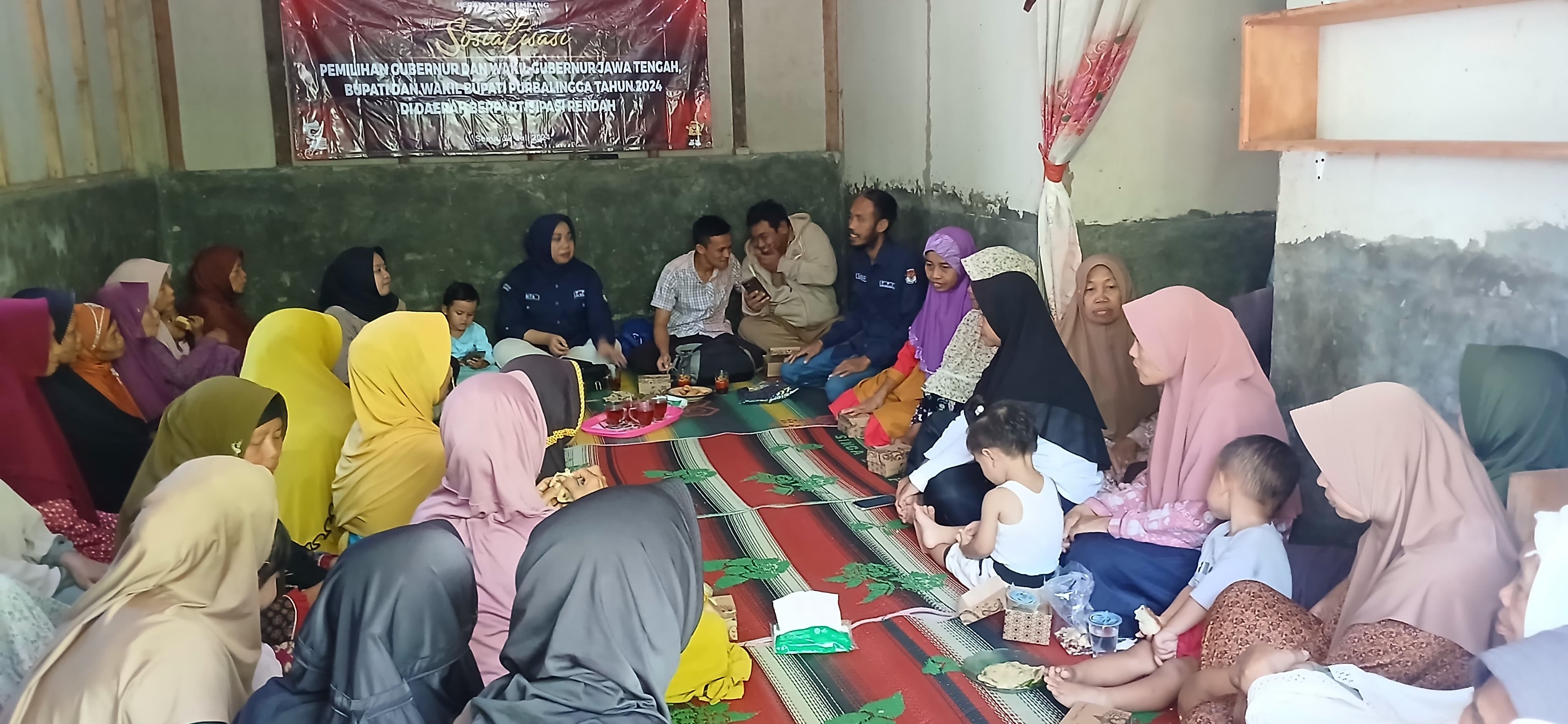 Rembang – Guna meningkatkan partisipasi masyarakat dalam pemilihan Kepala Daerah 27 November 2024 mendatang, Panitia Pemilihan Kecamatan (PPK) Rembang mengadakan sosialisasi di daerah dengan partisipasi rendah di Desa Tanalum Rt 05 Rw 01, Senin (22/7). Ketua PPK Rembang, Anita Indah Wulanti mengajak warga yang hadir untuk ikut serta mensukseskan pemilihan kepala daerah tahun 2024 ini karena sangat berpengaruh pada masa depan bangsa dengan segala program-programnya khususnya 5 tahun kedepan. Pendidikan pemilih kepada masyarakat terutama ibu-ibu diharapkan dapat meningkatkan kesadaran mereka untuk datang memberikan hak suaranya di 27 November 2024 nanti. “Mari sukseskan pemilihan Gubernur, Wakil Gubernur Jawa Tengah, Bupati dan Wakil Bupati Purbalingga tahun 2024 mendatang, karena semua program-program yang sudah berjalan juga nanti tergantung kepada pemimpin yang baru akan diteruskan atau tidak nantinya untuk itu jangan lupa hari Rabu Pon, tanggal 27 November 2024 datang ke TPS dan berikan hak pilih ibu-ibu sekalian,” terang Anita Indah Wulanti. Tanalum menjadi salah satu desa dengan partisipasi rendah di Kecamatan Rembang pada pemilu 2024 kemarin. Hal ini disebabkan karena mayoritas masyarakatnya perantau. “Sebagian besar masyarakat di sini merantau, pulangnya beberapa bulan sekali, ada yang setahun sekali” ucap Muntoharoh, Ketua PPS Desa Tanalum seselai mengikuti Sosialisasi Pilkada di daerah dengan partisipasi rendah yang diadakan oleh Panitia Pemilihan Kecamatan (PPK) Rembang. Melalui kegiatan ini, Ketua PPK Rembang Anita Indah Wulanti juga terus mencoba memberikan pemahaman dan pengetahuan bagi warga segala macam hal yang ada di pemilihan kepala daerah. Seperti jumlah surat suara, tempat pemungutan suara, juga waktu pemungutan suara.