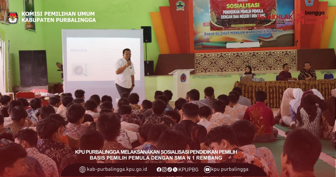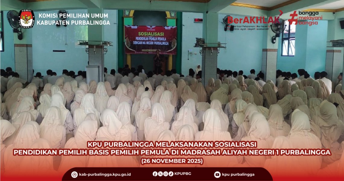 Dalam rangka meningkatkan pemahaman dan partisipasi pemilih pemula pada pelaksanaan Pemilu, KPU melaksanakan kegiatan sosialisasi pendidikan pemilih yang menyasar basis pemilih pemula. Kegiatan ini bertujuan memberikan pemahaman dasar terkait kepemiluan, khususnya bagi generasi muda yang akan menggunakan hak pilihnya. Sosialisasi pendidikan pemilih pemula dilaksanakan di SMA Negeri 1 Bobotsari dan diikuti oleh siswa dan siswi kelas X, XI dan XII serta perwakilan guru. Sosialisasi dilaksanakan diaula outdoor SMA Negeri 1 Bobotsari. Pada kegiatan tersebut, Mey Nurlela, S.S., M.Si. Ketua Divisi SDM, Pengembangan dan Penelitian Anggota KPU Provinsi Jawa Tengah hadir sebagai narasumber utama. Dalam pemaparannya, Mey Nurlela menjelaskan bahwa Pemilu yang dilaksanakan di Indonesia berlandaskan asas LUBER JURDIL, yaitu Langsung, Umum, Bebas, Rahasia, Jujur, dan Adil. Asas tersebut menjadi fondasi penting dalam penyelenggaraan Pemilu agar berlangsung demokratis dan berintegritas. “Pemilih datang langsung ke TPS tanpa perwakilan, memiliki kebebasan dalam menentukan pilihan, serta dijamin kerahasiaannya. Selain itu, seluruh proses Pemilu harus dilaksanakan secara jujur dan adil,” jelas Mey Nurlela di hadapan para peserta. Selain menjelaskan asas Pemilu, narasumber juga memaparkan tata cara memilih serta alur pemungutan suara di Tempat Pemungutan Suara (TPS). Mulai dari proses kedatangan pemilih, pengecekan identitas, penerimaan surat suara, tata cara mencoblos yang benar, hingga memasukkan surat suara ke kotak suara. Kegiatan sosialisasi kemudian dilanjutkan dengan penyampaian materi oleh Kepala Bidang Pengelola Informasi Administrasi Kependudukan (PIAK) Dinas Penduduk dan Pencatatan Sipil Kabupaten Purbalingga, Aminarti, S.Sos. Dalam pemaparannya, Aminarti menekankan pentingnya pemilih pemula untuk mengenal dan memahami identitas dirinya secara administrasi kependudukan. Ia menjelaskan bahwa setiap warga negara yang telah berusia 17 tahun wajib memiliki Kartu Tanda Penduduk (KTP) sebagai identitas resmi. KTP menjadi salah satu syarat utama dalam proses demokrasi, khususnya untuk menggunakan hak pilih pada saat Pemilu. “Pemilih pemula harus memastikan data kependudukannya sudah benar dan terdaftar, karena hal tersebut sangat berkaitan dengan hak memilih,” ujar Aminarti. Melalui sosialisasi ini, diharapkan pemilih pemula tidak hanya memahami hak dan kewajibannya sebagai warga negara, tetapi juga memiliki kepercayaan diri untuk berpartisipasi aktif dalam Pemilu. Pendidikan pemilih sejak dini menjadi langkah strategis untuk menciptakan Pemilu yang berkualitas serta meningkatkan partisipasi masyarakat, khususnya generasi muda. Serta melalui materi yang dibawakan oleh Dinas Penduduk dan Pencatatan Sipil Kabupaten Purbalingga ini, diharapkan masyarakat khususnya pemilih pemula yang belum mempunya KTP semakin sadar akan pentingnya administrasi kependudukan sebagai bagian dari kesiapan diri dalam berpartisipasi pada Pemilu.