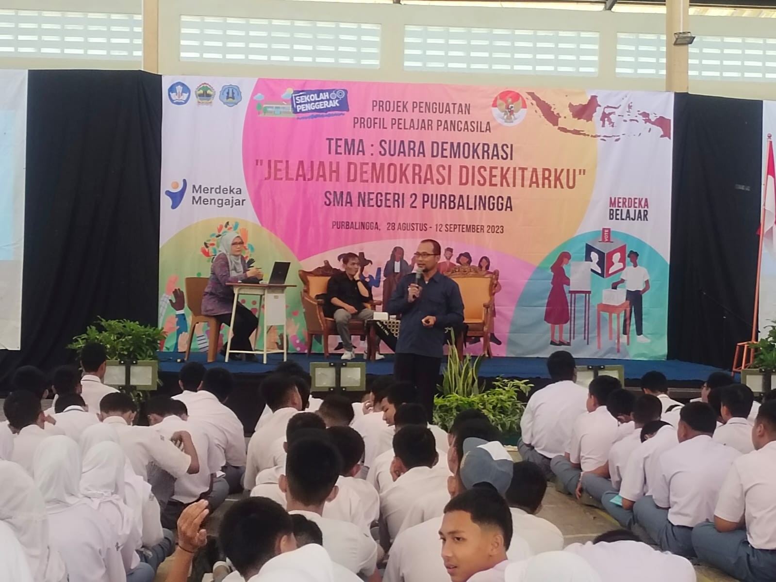 PURBALINGGA -- Komisi Pemilihan Umum Kabupaten Purbalingga menyelenggarakan KPU Goes to Pesantren Nonton Bareng film Kejarlah Janji di Pondok Pesantren MAN'BAUL IHSAN AL-BAEDLOWI, Kertanegara Purbalinggan sesuai dengan Surat KPU RI Nomor 12 Tahun 2023 tentang Petunjuk Teknis Pelaksaan KPU Goes to Pesantren dan Kampus Pada Hari Santri dan Hari Sumpah Pemuda Dalarn upaya peningkatan partisipasi masyarakat dalam Pemilu dan Pemilihan terdapat beberapa sasaran pemilih diantaranya adalah pernilih pemula dan pemilih muda. Pemilih pemula adalah pemilih yang baru pertama kali akan menggunakan hak suara nya dalam penyelenggaraan Pemilu. Sedangkan Pemilih Muda adalah pemilih yang berusia sekitar 17 - 40 tahun. Dilihat dari rentang usia pemilih muda bisa dikategorikan dalam kelompok milenial. Jumlah pemilih muda sekitar 107 juta orang atau 53-55% dari total jumlah pemilih pada Pernilu Tahun 2024. Jurnlah ini sangat potensial dalam upaya-upaya Peningkatan partisipasi masyarakat dalam penyelenggaran Pemilu Tahun 2024 dalam menyasar sasaran pemilih pemula dan pemilih muda perguruan tinggi dan pesantren menjadi salah satu kelompok strategis dalam upaya peningkatan partisipasi masyarakat dalam penyelenggaraan Pernilu Tahun 2024.