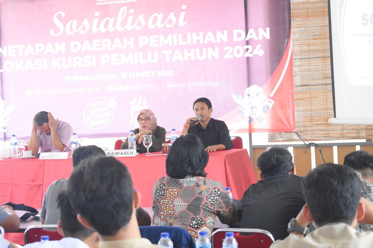 PURBALINGGA -- KPU Kabupaten Purbalingga menyelenggarakan Sosialisasi Pemilu Tahun 2024 bagi Basis Pemilih Muda pada Sabtu, 1 April 2023 bertempat di WM Kebone Mbah Badrun Bojong Purbalingga. Peserta kegiatan terdiri dari mahasiswa Universitas Purbalingga (UNPERBA), Institut Teknologi dan Bisnis Muhammadyah Purbalingga (ITBMP), dan Universitas Jenderal Soedirman Purwokerto. Turut hadir sebagai narasumber akademisi Fisipol Unsoed Purwokerto DR. Indaru Setyo Nurprojo MA. Kegiatan dibuka oleh sambutan dari Anggota KPU Purbalingga Ketua Divisi Teknis Penyelenggaraan, Zamaahsari, S.IP., M.IP. Dalam sambutannya Zam menyampaikan selama ini masyarakat masih melihat tahapan Pemilu hanya sebatas menjelang hari pemungutan suara saja. Disampaikan kepada peserta sosialisasi jika KPU telah melaksanakan kegiatan tahapan Pemilu 2024 sejak bulan Juni 2022. Zam juga menyampaikan kepada para mahasiswa peserta sosialisasi tentang hak politik bagi warga negara Indonesia yaitu hak memilih dan hak dipilih dalam Pemilu. Harapannya melalui sosialisasi ini para pemilih muda dapat menjadi agen sosialisasi yang ikut membantu menyebarkan informasi terkait kepemiluan khususnya di lingkungan pertemanan dan masyarakat pada umumnya. Materi sosialisasi kemudian disampaikan oleh DR. Indaru Setyo Nurprojo, M.A, yang menekankan bahwa pemilih muda memiliki posisi strategis dan posisi politis dalam Pemilu tahun 2024. Posisi strategis karena pemilih muda merupakan pemilih terbesar secara jumlah (60%) dari total jumlah pemilih. Sedangkan posisi politis, para pemilih muda memiliki posisi tawar bagi peserta Pemilu untuk mendulang perolehan suara. Pada kenyataannya pemilih muda masih banyak yang belum menyadari potensi posisinya di dunia politik bahkan banyak yang cenderung untuk memilih apatis tentang politik. Indaru juga mengingatkan tentang pentingnya menggunakan hak suara dalam Pemilu. Dari Pemilu akan terpilih figur-figur pembuat kebijakan yang konsekuensinya akan dirasakan oleh semua lapisan masyarakat. Oleh sebab itu, Indaru mengajak para peserta sosialisasi sebagai pemilih muda untuk tidak golput dalam Pemilu dan menjadi pemilih yang cerdas juga bertanggung jawab. Indaru juga berharap nantinya para mahasiswa bisa berpartisipasi menjadi agen sosialisasi tentang Pemilu bagi pemilih muda yang lain melalui media sosial yang dimiliki. Hal ini penting karena tidak semua pemilih muda memiliki akses kepada informasi pendidikan tentang politik dan kepemiluan. Mengakhiri materi sosialisasi, Anggota KPU Purbalingga Divisi Sosdiklih, Parmas dan SDM, Andri Supriyanto, S.Pd. menekankan kembali agar mahasiswa peserta sosialisasi bisa ikut berkontribusi dalam mensukseskan Pemilu 2024. Salah satunya adalah melalui kreativitas di media sosial yang menyebarkan informasi edukatif tentang kepemiluan bagi masyarakat. Kegiatan kemudian ditutup dengan diskusi dan buka bersama dengan seluruh peserta sosialisasi.