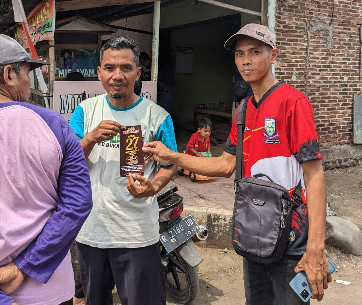 KARANGCENGIS, Manfaatkan momentum perayaan HUT RI Ke-79, PPS Karangcengis melaksanakan Sosialisasi Pilkada 2024, di area jalan yang digunakan untuk jalur karnaval dari Kedungjati ke Bukateja, Kamis,22 Agustus 2024. Wahyu Adi W, Anggota PPS Karangcengis, menyampaikan kepada Masyarakat yang sedang menonton karnafal bahwa tanggal 27 November ada Pemilihan Kepala Daerah Gubernur dan Wakil Gubernur Jawa Tengah, Bupati dan Wakil Bupati Kabupaten Purbalingga. “Bagi Masyarakat yang sudah memiliki Hak Pilih monggoh untuk di cek namanya dipapan pengumuman Kantor Desanya masing-masing atau bisa di cek secara online di https://cekdptonline.kpu.go.id/” ucapnya Pengumuman yang terpasang di Balai Desa masih berupa Daftar Pemilih Sementara (DPS) Masyarakat bisa memberikan masukan/tanggapan melalui PPS dalam waktu 10 hari, 18 – 27 Agustus 2024. Saat ini DPS Desa Karangcengis sejumlah 5.269. Laki-laki 2.619, Perempuan 2.650. “Jangan lupa Bapak/Ibu semua datang ke TPS pada hari Rabu, 27 November 2024 untuk menggunakan hak pilihnya” lanjutnya Menurutnya suara kita sangat berharga untuk masa depan Bangsa. Karena kita meiliki hak Demokrasi yang sama dari Rakyat, oleh Rakyat, dan Untuk Rakyat.
