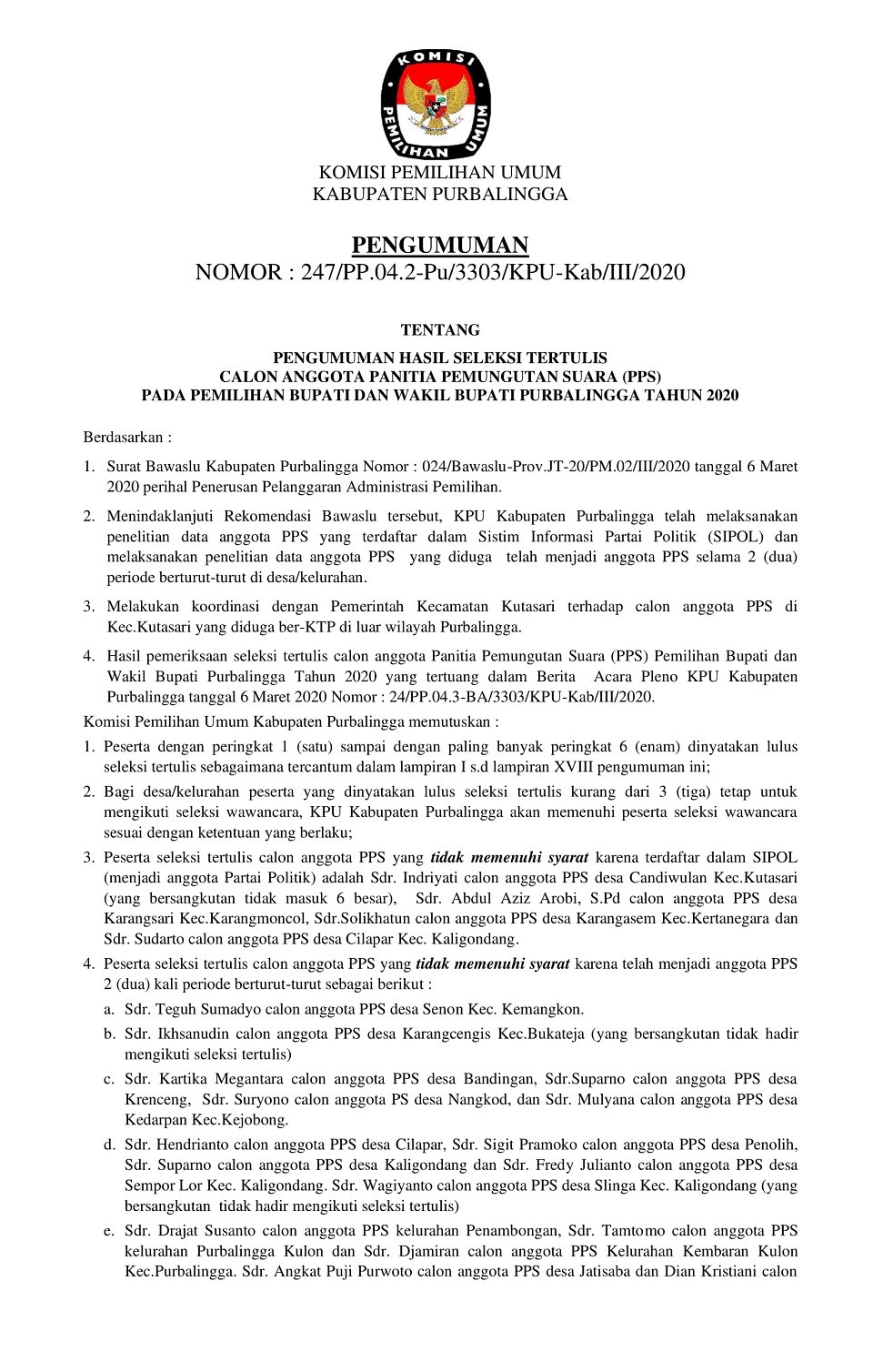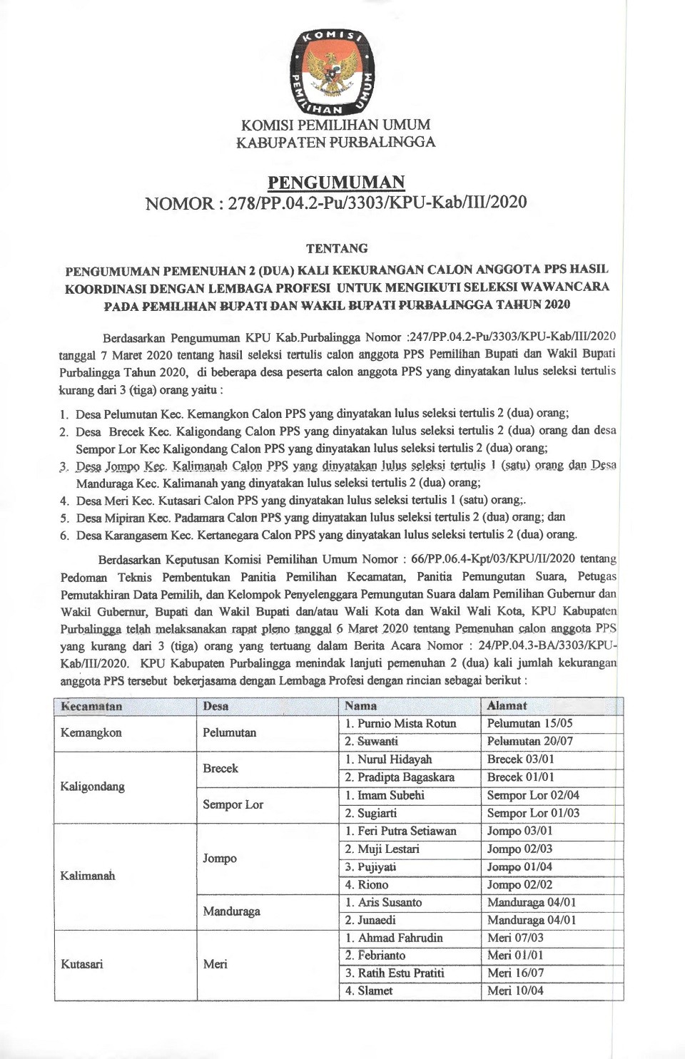 Download Peraturan KPU Nomor 2 Tahun 2020