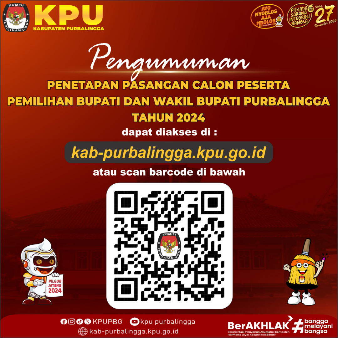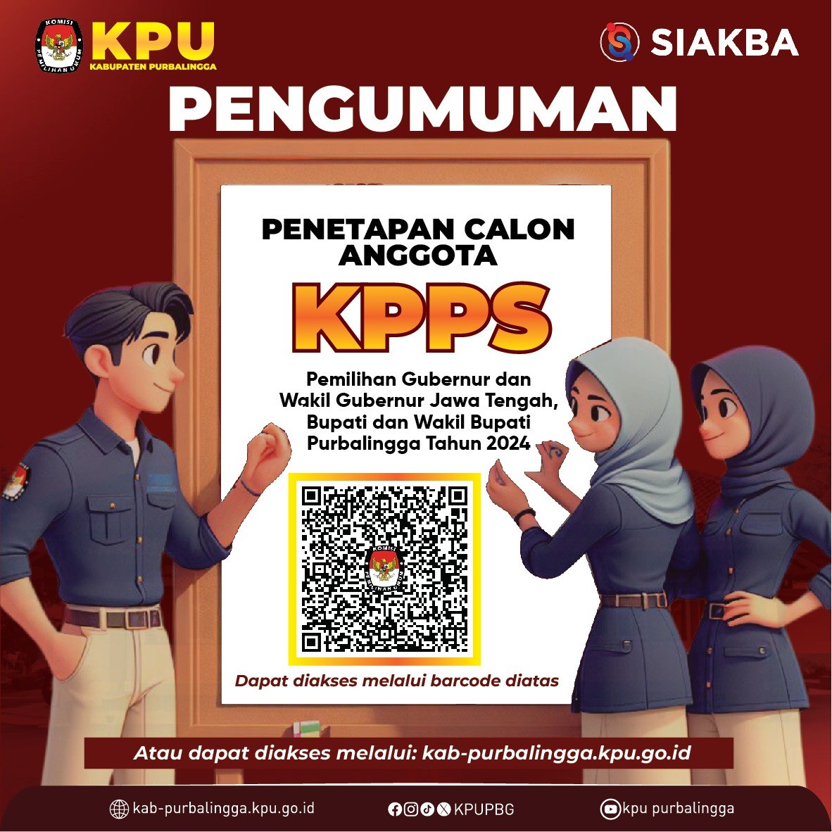 PENGUMUMAN PENETAPAN CALON ANGGOTA KELOMPOK PENYELENGGARA PEMUNGUTAN SUARA TERPILIH UNTUK PEMILIHAN GUBERNUR DAN WAKIL GUBERNUR JAWA TENGAH SERTA BUPATI DAN WAKIL BUPATI PURBALINGGA TAHUN 2024