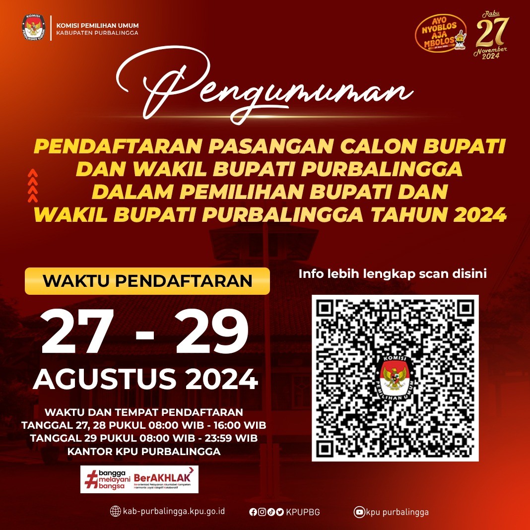 Surat Sekretaris Jenderal KPU RI Nomor 2334/PP.09.0-SD/06/2024 tanggal 28 Juni 2024, perihal Pemberitahuan/PengumumanPelaksanaan Kegiatan Market Sounding dalam rangka Pengadaan Logistik Pemilihan 2024 pada Rapat Koordinasi dan Bimbingan Teknis Persiapan Pengadaan LogistikPemilihan Gubernur dan Wakil Gubernur, Bupati dan Wakil Bupati, serta Walikota dan Wakil Walikota Tahun 2024, dapat diunduh disini.