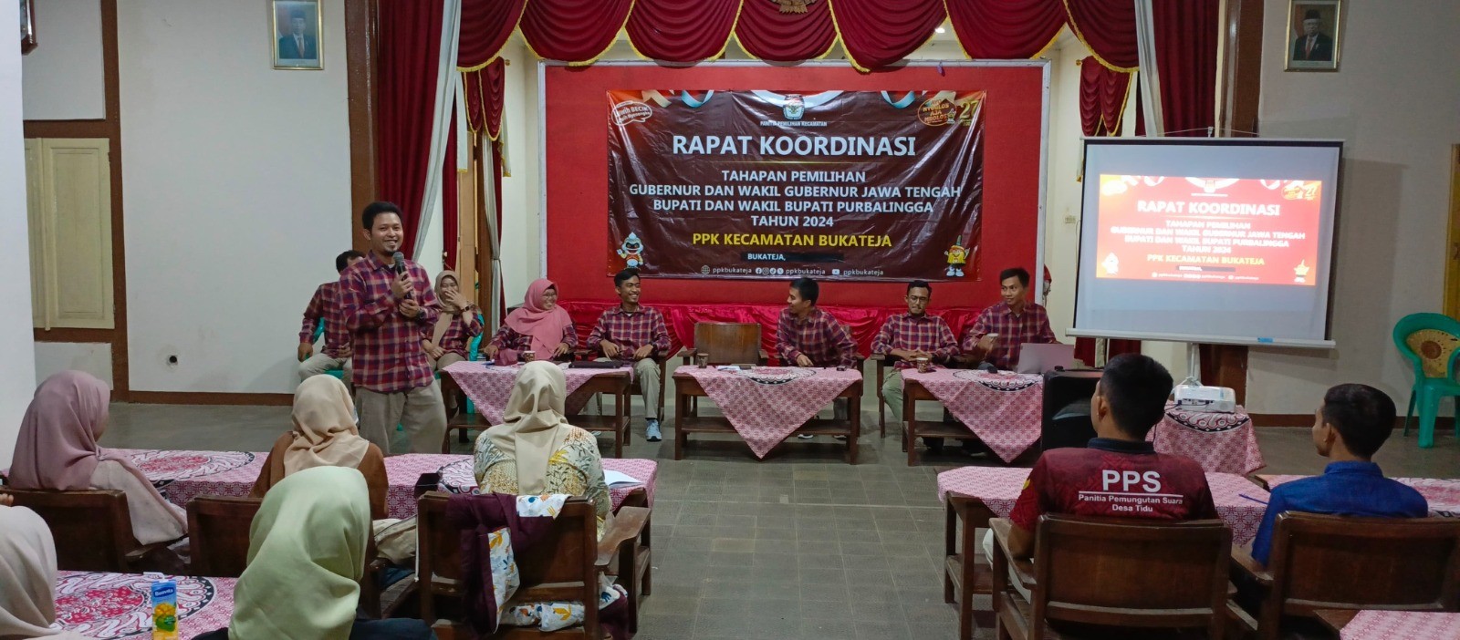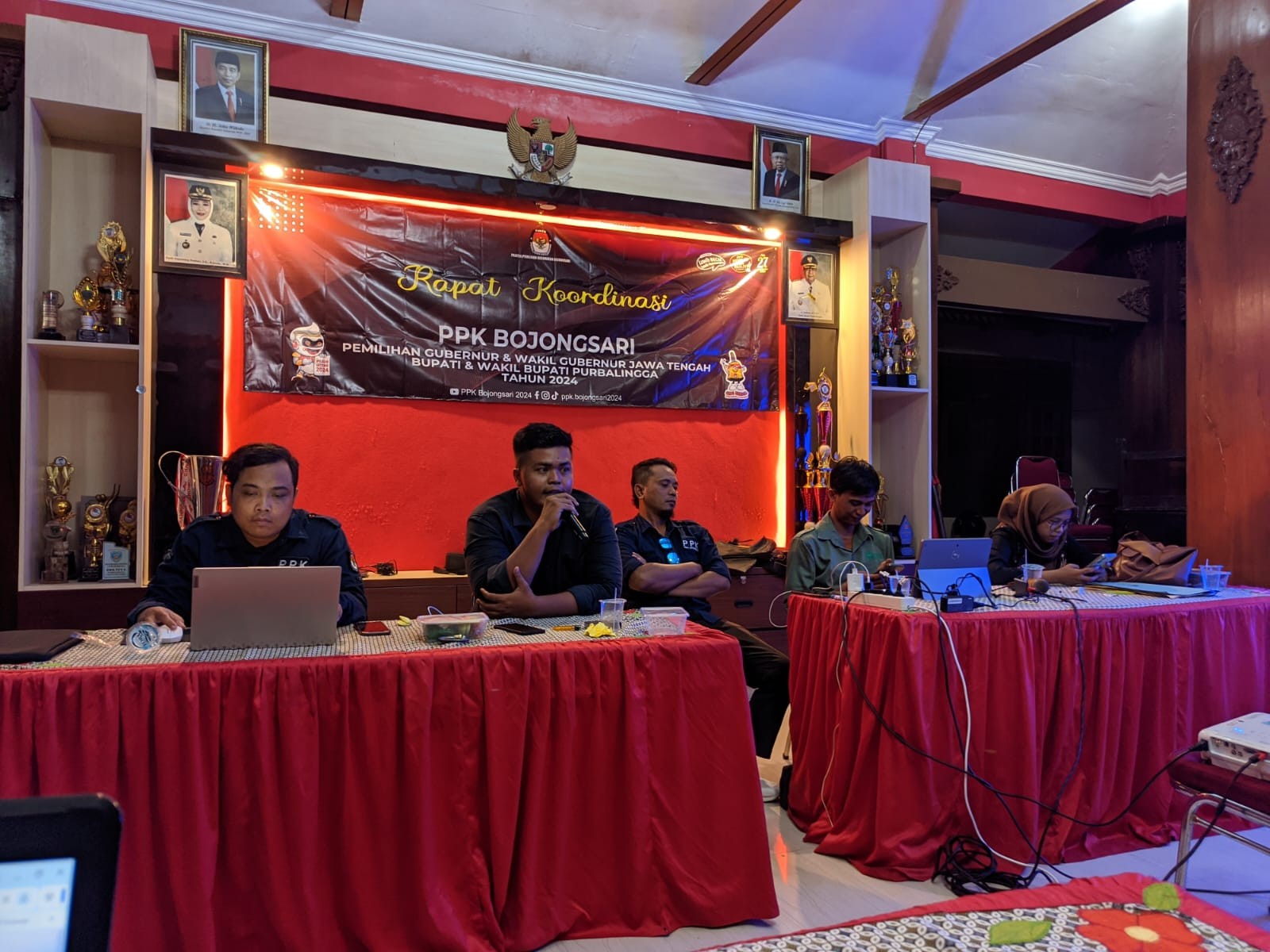 Panitia Pemilihan Kecamatan (PPK) Kecamatan Bojongsari melaksanakan Rapat Koordinasi Persiapan Rekrutmen Petugas Pemutakhiran Data Pemilih (Pantarlih) untuk Pilkada 2024. Rapat menghadirkan Panitia Pemungutan Suara (PPS) se-kecamatan Bojongsari di Aula kecamatan, Jum'at, 7 Juni 2024. Perlu diketahui, untuk rekrutmen Pantarlih akan dibuka mulai 13 -19 Juni 2024. Di kecamatan Bojongsari, dibutuhkan 184 Pantarlih untuk 13 desa. Sementara itu, jumlah Tempat Pemungutan Suara (TPS) di kecamatan Bojongsari ada 93 TPS. "Nantinya, pantarlih terpilih akan dilantik pada tanggal 24 Juni 2024 sesuai jadwal dalam KPT 638 Tahun 2024," kata Widyo Wibowo, Komisioner KPU Purbalingga. Dalam rapat tersebut, Ketua PPK Bojongsari, Septi Apriani menginstruksikan PPS untuk mempersiapkan dengan baik. "Jadi PPS nanti mengumumkan pendaftaran di tempat publik yang mudah diakses oleh masyarakat dan memanfaatkan sarana media informasi esuai KPT 638," katanya. Persyaratan Pantarlih meliputi surat pendaftaran, daftar riwayat hidup, fotokopi KTP, Ijazah, pas foto, surat pernyataan dan surat keterangan. Selain itu, dalam rapat koordinasi PPK Bojongsari juga menyampaikan tentang metode sosialisasi Pilkada 2024. PPS diminta berkoordinasi dengan perangkat desa untuk mengetahui jadwal forum warga di desa masing-masing, seperti kumpulan RT dan forum warga lainnya. Kemudian manfaatkan forum tersebut untuk kegiatan sosialisasi kepada masyarakat dengan mengenalkan tahapan yang sedang berlangsung dan ajakan untuk menggunakan hak pilihnya pada saat pemilihan, 27 November 2024.