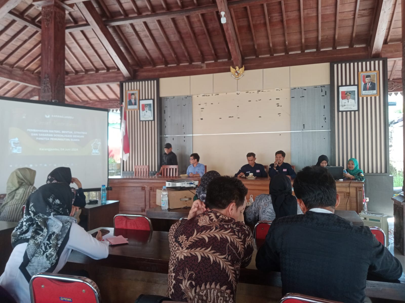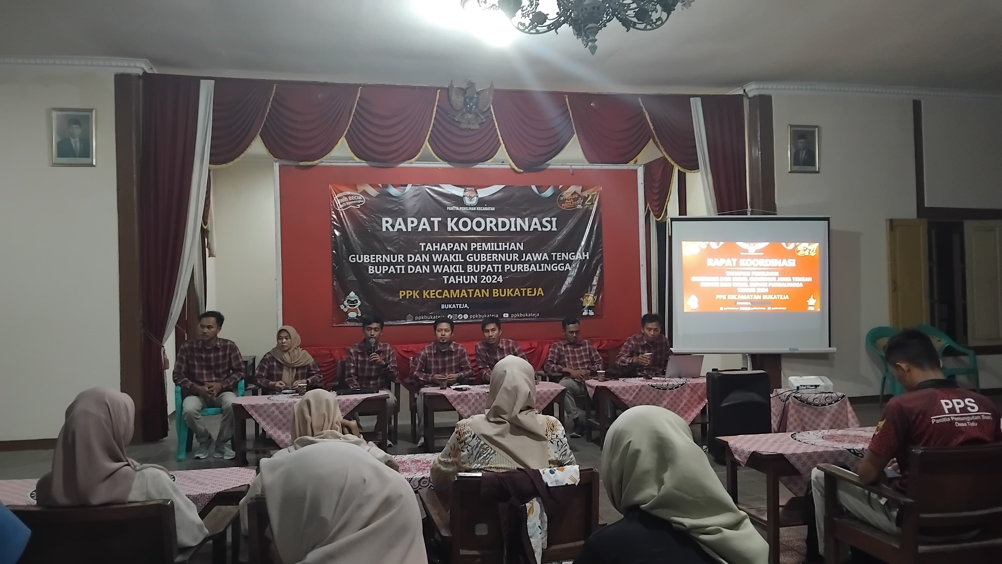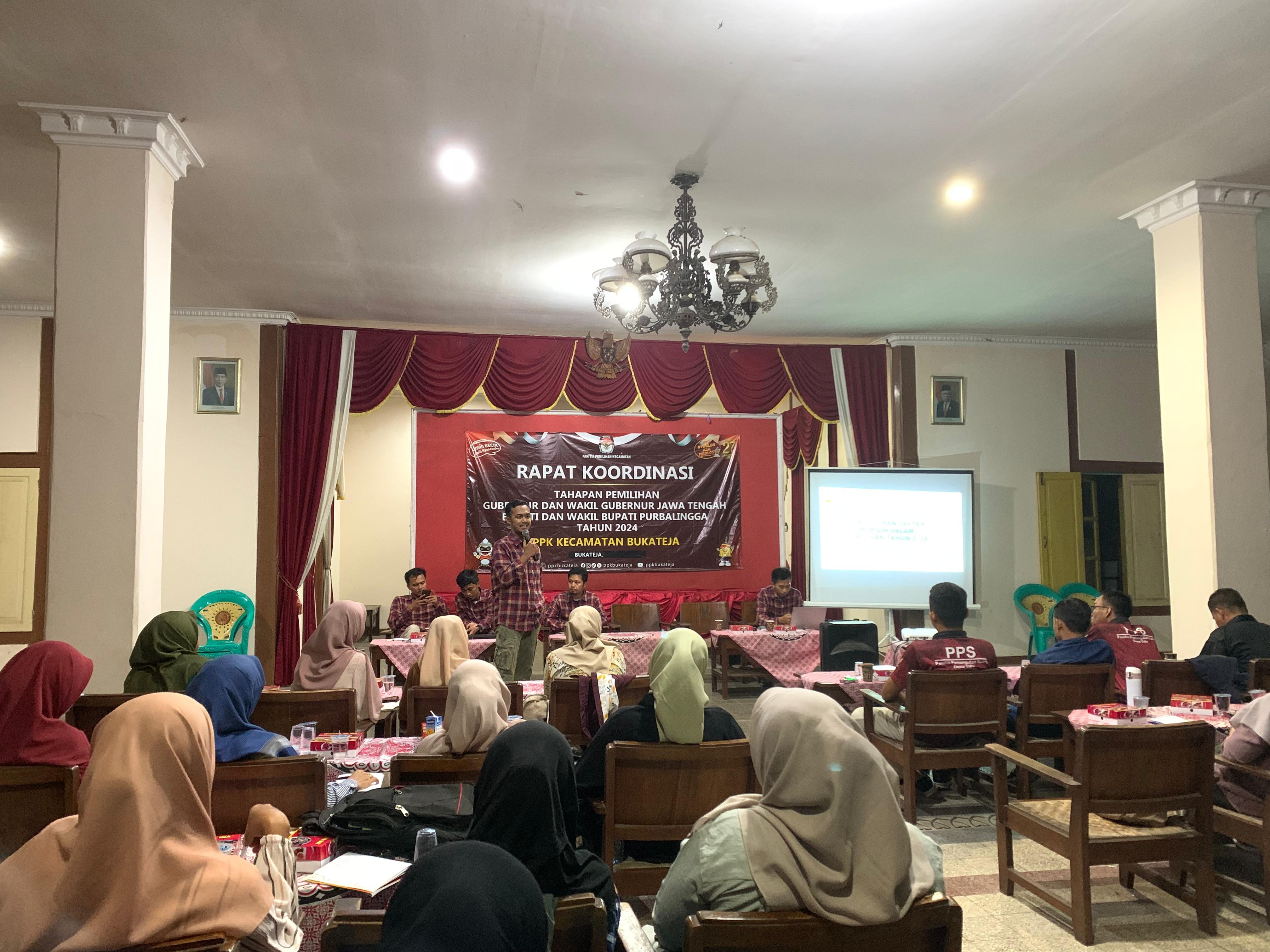 Panitia Pemungutan Suara (PPS) Desa Bajong mengikuti Rapat Koordinasi (Rakor) perdana yang digelar oleh PPK Bukateja bersama seluruh jajaran PPS Se-Kecamatan Bukateja di Pendopo Wiro Hutomo Kecamatan Bukateja Rabu ,5 Juni 2024. Rakor ini membahas tentang tahapan Pilkada Serentak 2024. Turut hadir dalam Rakor tersebut segenap Sekretariat PPK Bukateja. Sambutan pertama disampaikan oleh Ketua PPK Bukateja Aliy Wakhyu Hidayat , beliau menyampaikan banyak hal terkait persiapan kinerja PPS yang harus senantiasa bersinergi membangun kerja sama yang baik terkait tugas-tugas PPS dari KPU melalui PPK. Beliau juga menambahkan bahwa PPS harus selalu membangun kekompakan kinerja dengan sesama anggota PPS dan sekertaris PPS diwilayah masing-masing. Dalam kesempatan rapat koordinasi tersebut Sekertaris PPK Bukateja Bakhtiar Amran Rifani juga memberikan pesan kepada segenap PPS Se-Kecamatan Bukateja dalam sambutannya bahwa PPS harus selalu menjaga kinerja baiknya dan meningkatan jejaring yang linier dengan pemerintahan desa, sekertaris PPS serta masyarakat luas di wilayah masing-masing. Hal inti yang diperoleh dari rakor tersebut adalah diterimanya materi-materi terkait tahapan Pilkada 2024 yang dipaparkan secara langsung oleh semua divisi PPK Bukateja dengan sangat jelas, termasuk tahapan yang paling dekat ini adalah pembentukan Petugas Pemutakhiran Data Pemilih (Pantarlih) Pilkada 2024. Dijelaskan secara lengkap terkait jadwal pembentukan, syarat – syarat pendaftaran calon Pantarlih serta semua hal-hal yang terkait dengan pembetukan Pantarlih sesuai dengan Keputusan KPU Nomor 638 Tahun 2024. Dalam hal ini PPS Desa Bajong sangat berkomitmen untuk dapat melaksanakan tahapan-tahapan Pilkada 2024 yang telah disampaikan oleh PPK Bukateja dengan penuh tanggung jawab dan harapannya dapat melaksanakan tugas-tugas dengan baik dan berjalan lancar. ( Eva Yulianti )