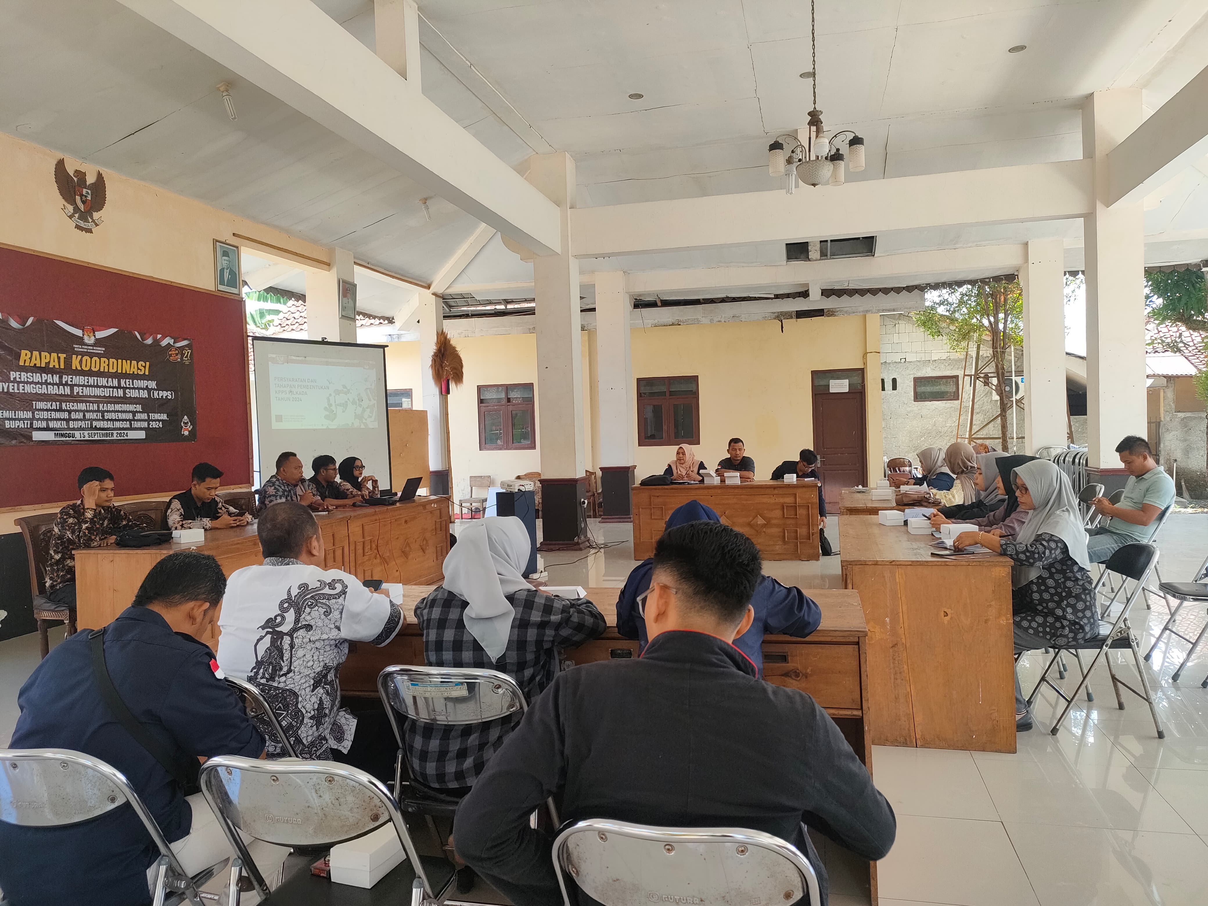 Panitia Pemilihan Kecamatan (PPK) Rembang Purbalingga, membutuhkan 749 anggota Kelompok Penyelenggara Pemungutan Suara (KPPS) pada pemilihan Gubernur dan Wakil Gubernur Jawa Tengah, Bupati dan Wakil Bupati Purbalingga Tahun 2024. Ketua PPK Rembang, Anita Indah Wulanti mengatakan bahwa pihaknya saat ini tengah mempersiapkan perekrutan KPPS. “Untuk Pengumuman dijadwalkan mulai 17 September 2024, jumlah TPS di Kecamatan Rembang Purbalingga sendiri ada 107 TPS sehingga jumlah anggota KPPS yang dibutuhkan sebanyak 749 KPPS yang akan bertugas di 12 Desa yang ada di Kecamatan Rembang,” Nantinya mereka dipilih tujuh orang untuk bertugas di setiap TPS. JADWAL PEMBENTUKAN PILKADA 2024 Berdasarkan Keputusan KPU Nomor 475 Tahun 2024, tentang pedoman teknis pembentukan badan adhoc penyelenggaraan Pemilihan Gubernur dan Wakil Gubernur, Bupati dan Wakil Bupati, dan Walikota dan Wakil Walikota (Pilkada 2024), berikut informasi jadwal pembentukan anggota KPPS Pilkada 2024: Pengumuman pendaftaran calon anggota KPPS Tanggal 17-21 September 2024 Penerimaan pendaftaran calon anggota KPPS: Tanggal 17-28 September 2024 Penelitian administrasi calon anggota KPPS: Tanggal 18-29 September 2024 Pengumuman hasil penelitian administrasi: Tanggal 30 September-2 Oktober 2024 Tanggapan dan masukan masyarakat calon KPPS : Tanggal 30 September-5 Oktober 2024 Pengumuman hasil seleksi calon anggota KPPS: Tanggal 5-7 Oktober 2024 Penetapan dan pelantikan anggota KPPS: Tanggal 7 November 2024 Masa kerja KPPS untuk Pilkada 2024: Tanggal 7 November-8 Desember 2024. Syarat dan Cara Daftar KPPS Pilkada 2024 Mengutip dari Peraturan KPU, berikut informasi syarat dan cara untuk mendaftar sebagai KPPS Pilkada 2024: Merupakan Warga Negara Indonesia (WNI). Berusia paling rendah 17 tahun. Setia kepada Pancasila sebagai dasar Negara, UUD 1945, NKRI, Bhinneka Tunggal Ika, dan cita cita Proklamasi 17 Agustus 1945. Mempunyai integritas, pribadi yang kuat, jujur dan adil. Tidak menjadi anggota partai politik yang dinyatakan dengan surat pernyataan yang sah atau sekurang-kurangnya dalam waktu 5 tahun tidak lagi menjadi anggota partai politik yang dibuktikan dengan surat keterangan dari pengurus partai politik yang bersangkutan. Berdomisili dalam wilayah kerja badan adhoc Penyelenggara Pemilihan (Pilkada). Mampu secara jasmani, rohani dan bebas dari penyalahgunaan Narkotika. Berpendidikan paling rendah sekolah menengah atas (SMA) atau sederajat. Tidak pernah dipidana penjara berdasarkan putusan pengadilan yang telah memperoleh kekuatan hukum tetap karena melakukan tindak pidana yang diancam dengan pidana penjara 5 tahun atau lebih. Untuk masyarakat yang ingin berpartisipasi dalam penyelenggara pemilihan Kepala Daerah Tahun 2024 sebagai KPPS dapat menghubungi Panitia Pemungutan Suara (PPS) di Desanya masing-masing.