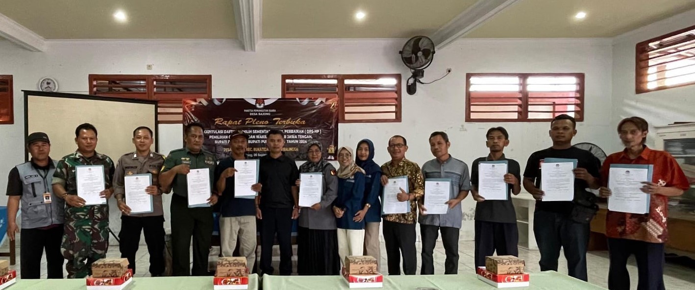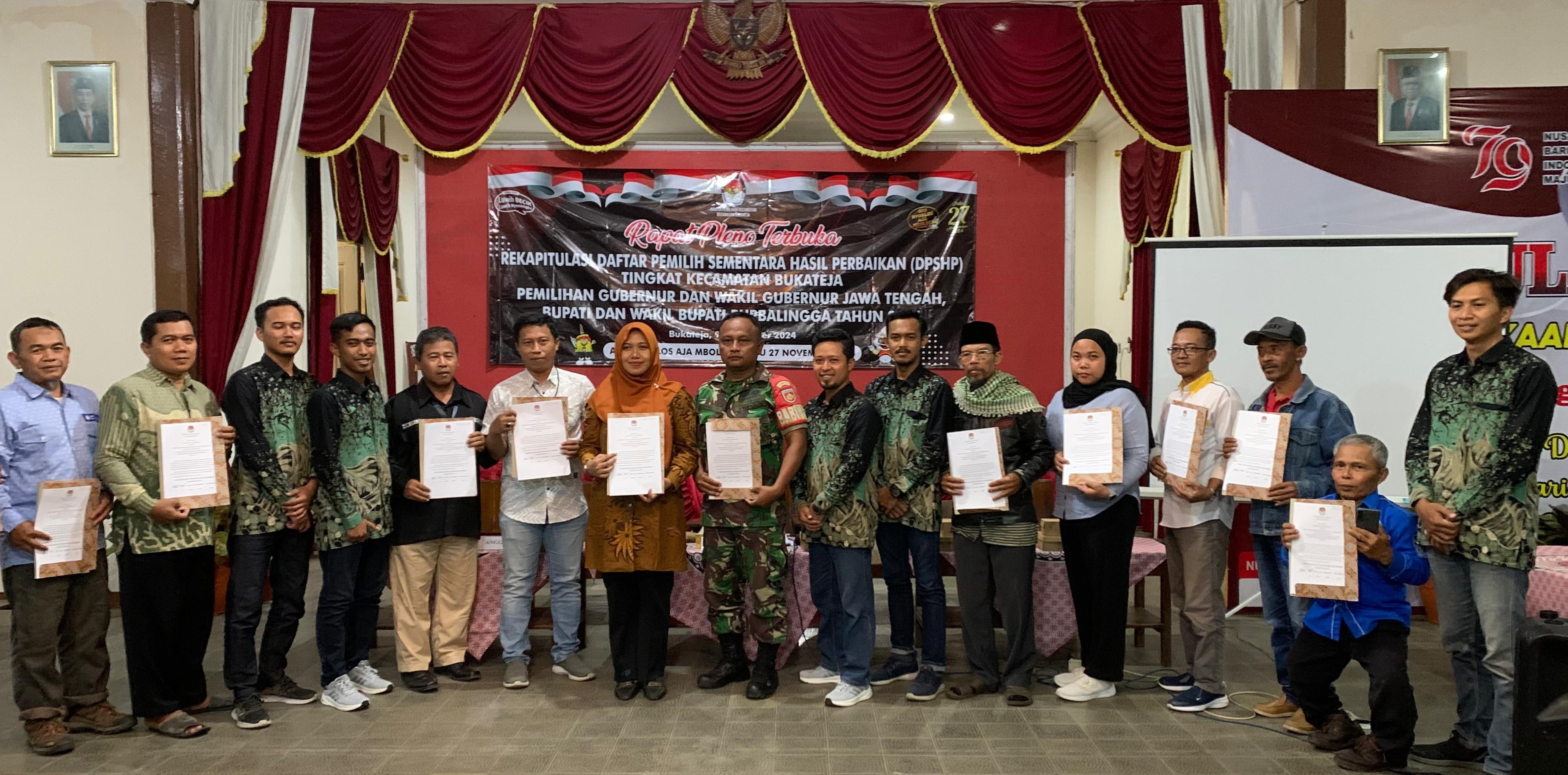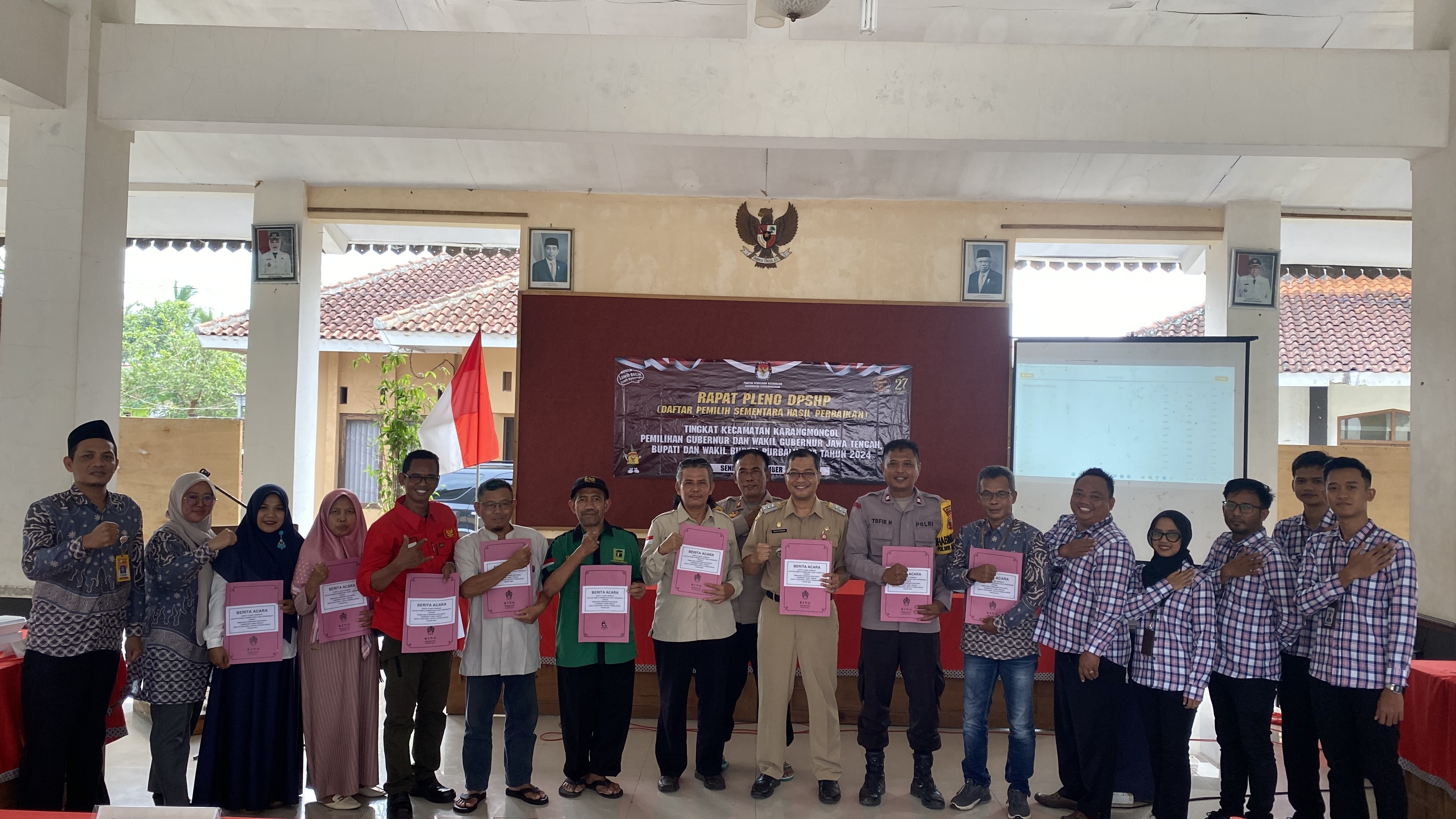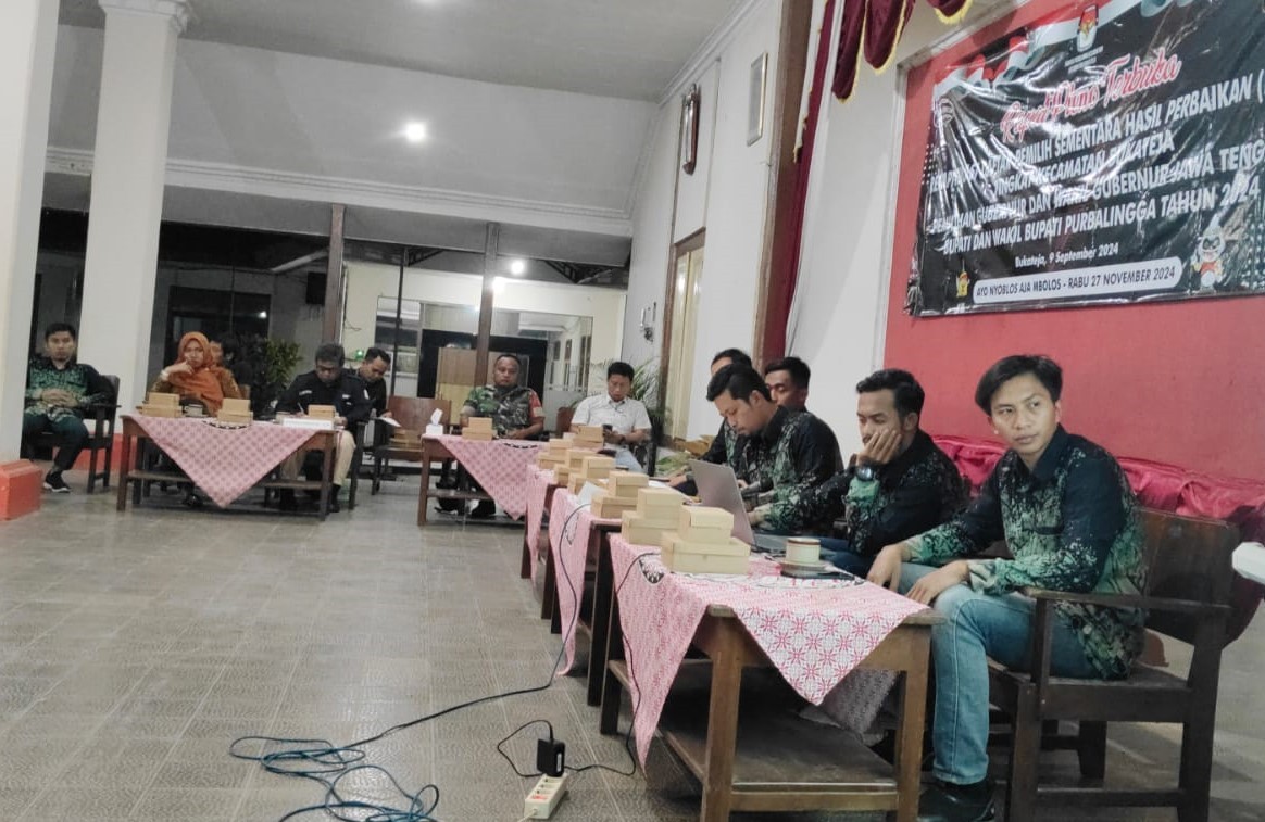 Karangmoncol - Panitia Pemilihan Kecamatan (PPK) Kecamatan Karangmoncol menggelar Rapat Pleno Terbuka Rekapitulasi Daftar Pemilih Sementara Hasil Perbaikan (DPSHP) untuk pemilihan Gubernur dan Wakil Gubernur Jawa Tengah, Bupati dan Wakil Bupati Purbalingga tahun 2024. Senin, (9/9/2024).