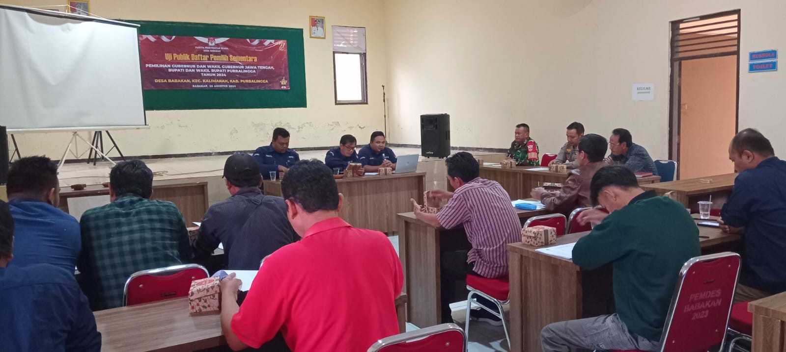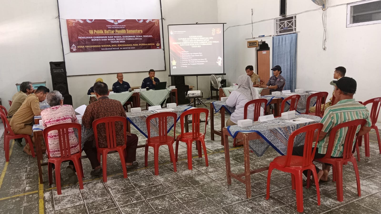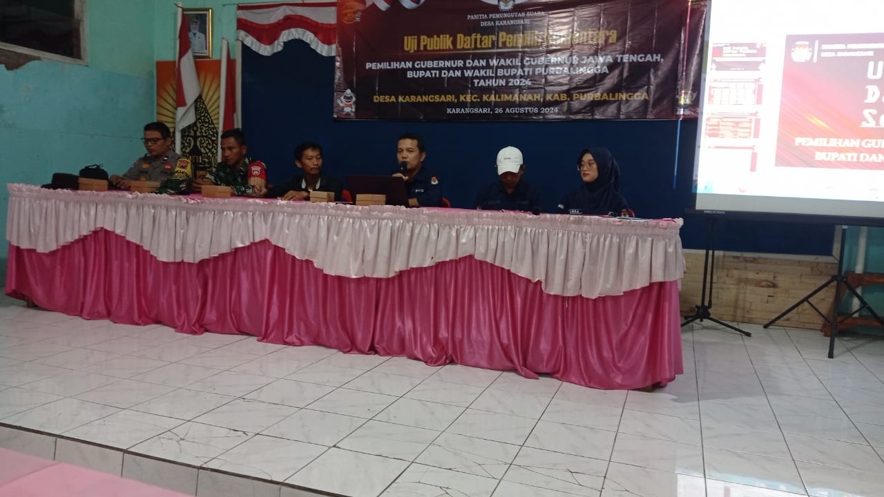 KALIKABONG - Senin, 26 Agustus 2024 PPS Kelurahan Kalikabong lakukan Uji Publik terhadap Daftar Pemilih Sementara (DPS) untuk Pemilihan Gubernur dan Wakil Gubernur Jawa Tengah, Bupati dan Wakil Bupati Purbalingga Tahun 2024. Uji Publik yang dilaksanakan pukul 19.30 WIB dihadiri oleh Bapak Irfan Naufal, S.STP (Lurah Kalikabong), Forkompimdes Kalikabong (Babinsa, Babinkamtibmas), Panwas Kalikabong, Sekretaris dan Staff Sekretariat PPS Kalikabong, dan Tokoh Masyarakat (Tomas) di 8 wilayah TPS Kelurahan Kalikabong, serta dimonitoring langsung oleh Ketua PPK Kalimanah, Asep Mulyawan. Rangkaian acara dalam Uji Publik di tingkat Kelurahan Kalikabong adalah sebagai berikut: Menyanyikan Lagu Indonesia Raya Mendengarkan Jingle Pilkada 2024 Pembacaan Doa Sambutan dan Pembukaan oleh Ketua PPS Acara inti: Uji Publik dan Pencermatan DPS Masukan dan tanggapan masyarakat Penutup Ketua PPS Kalikabong, Cahyo Dwi Mulyono, menyampaikan bahwa uji publik ini merupakan tahapan penyampaian tanggapan dan masukan dari masyarakat terkait Daftar Pemilih Sementara (DPS) yang telah diumumkan PPS Kalikabong di sekretariat PPS serta di 8 titik terdekat potensial TPS. Rekap DPS Kalikabong yaitu 4.541 pemilih dengan rincian 2.277 pemilih laki-laki dan 2.264 pemilih perempuan. PPS Kalikabong membagikan salinan DPS per TPS kepada tomas untuk dilakukan pencermatan bersama sekaligus menyampaikan tanggapan jika ada perubahan pemilih (TMS, baru, pindah keluar/masuk). Memasuki sesi masukan dan tanggapan masyarakat, S. Budiyono, Panwas Kelurahan Kalikabong menyampaikan terkait kolom usia dan alamat pemilih untuk dapat disesuaikan serta adanya 7 (tujuh) pemilih TMS kode 1 di Kelurahan Kalikabong. PPS Kalikabong bersinergi bersama Sekretariat PPS telah mengonfirmasi kebenaran data tersebut dengan adanya bukti dukung akta kematian. Tahapan uji publik DPS Kelurahan Kalikabong dalam rangka pemutakhiran data pemilih Pilkada tahun 2024 dan akan terus dilakukan perbaikan sesuai kondisi dan temuan yang ada. Tahapan perbaikan data pemilih ini akan terus dilaksanakan sampai dengan nantinya Daftar Pemilih Tetap (DPT) Pilkada ditetapkan. (sari/red)