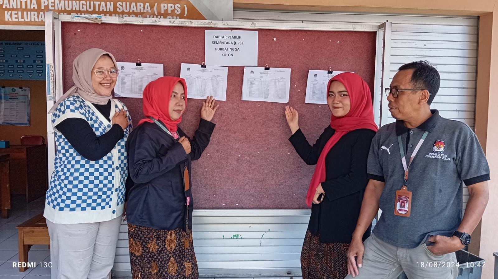 Minggu, 18 Agustus 2024 Panitia Pemungutan Kecamatan (PPK) Kertanegara bersama Panwascam Kertanegara telah melaksanakan monitoring pemasangan Daftar Pemilih Sementara (DPS) dibeberapa titik lokasi. Pemilihan Gubernur dan Wakil Gubernur Jawa Tengah, Bupati dan Wakil Bupati Purbalingga Tahun 2024 ini akan berlangsung pada Rabu, 27 November 2024 yang pada tahapannya sudah sampai ditahapan penetapan DPS pada 11 Agustus 2024 lalu saat pleno tingkat kabupaten bersama KPU Kabupaten Purbalingga. Pemasangan DPS yang dapat dilihat oleh khalayak umum ini diharapkan nantinya ada kontroling dari masyarakat luas dan memastikan pengawalan hak pilih untuk Pilkada 2024. Pada hari ini, disetiap Balai Desa di wilayah Kecamatan Kertanegara seluruhnya memasang DPS untuk dapat dicermati dan dilihat oleh khalayak umum. “Pemasangan DPS dilaksanakan serentak sejak tanggal 18-27 Agustus 2024 diseluruh Balai Desa se-kecamatan Kertanegara dan beberapa titik lokasi yang ramai dikunjungi warga agar mudah dicermati oleh masyarakat umumnya”, ucap Septiana Niti Sara Divisi Data dan Informasi.