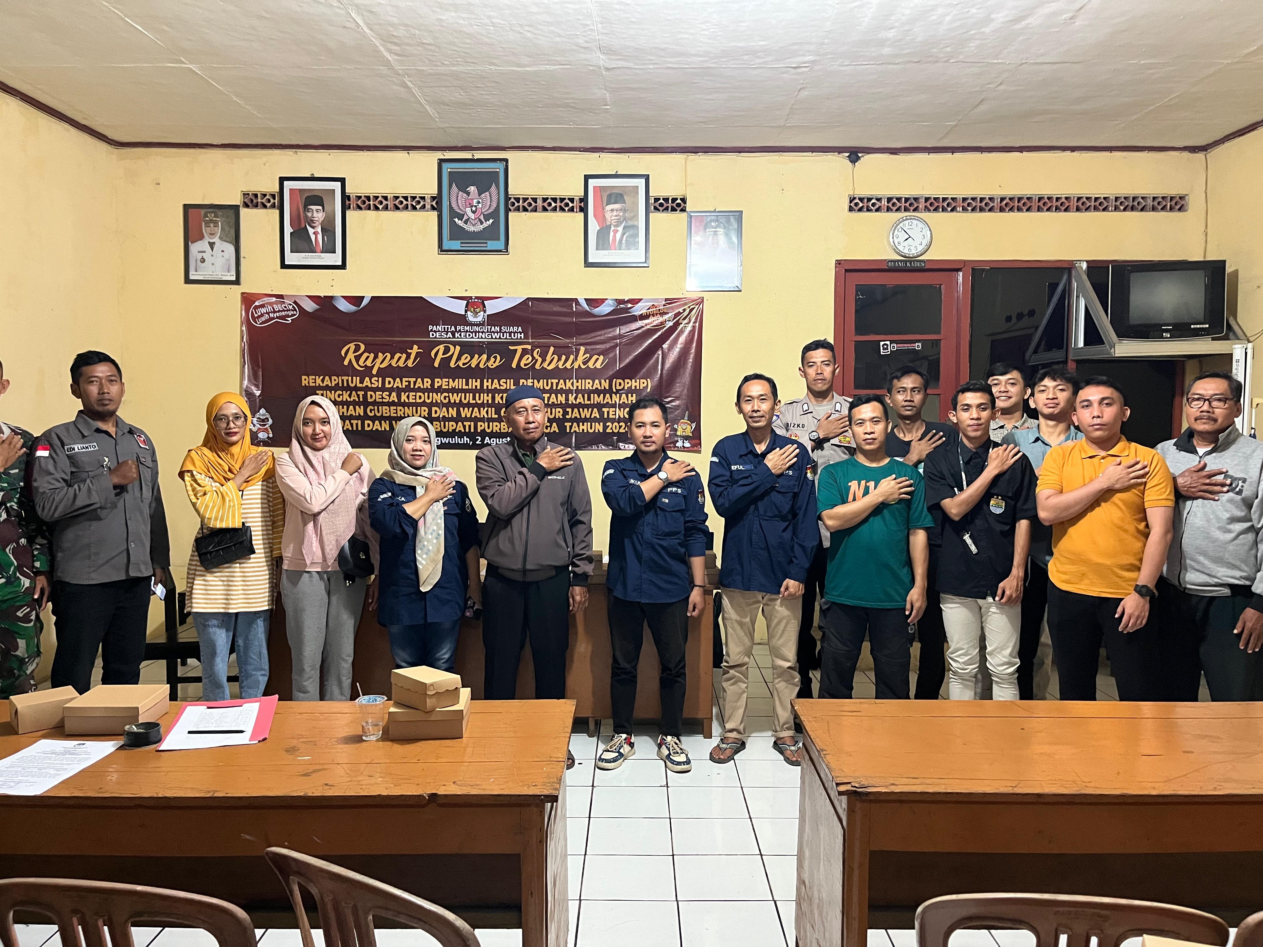 Jumat 2 Agustus 2024,PPS Desa Kedungwuluh melaksanakan Rapat Pleno Terbuka DPHP ( Daftar Pemilih Hasil Pemutakhiran ) untuk Pemilihan Gubernur dan wakil Gubernur dan juga pemilihan Bupati dan Wakil Bupati di Aula Balaidesa Kedungwuluh. Rapat pleno ini dihadiri oleh seluruh anggota PPS dan sekretariat PPS,Pkd,Forkopimdes ( Kepala Desa,Babinsa,Babinkamtibmas),Pantarlih,dan juga perwakilan dari Partai Politik . Perwakilan Partai politik yang hadir pada pleno ini diantaranya adalah perwakilan dari partai PDI Perjuangan,Partai Gerindra dan juga Partai Perindo.