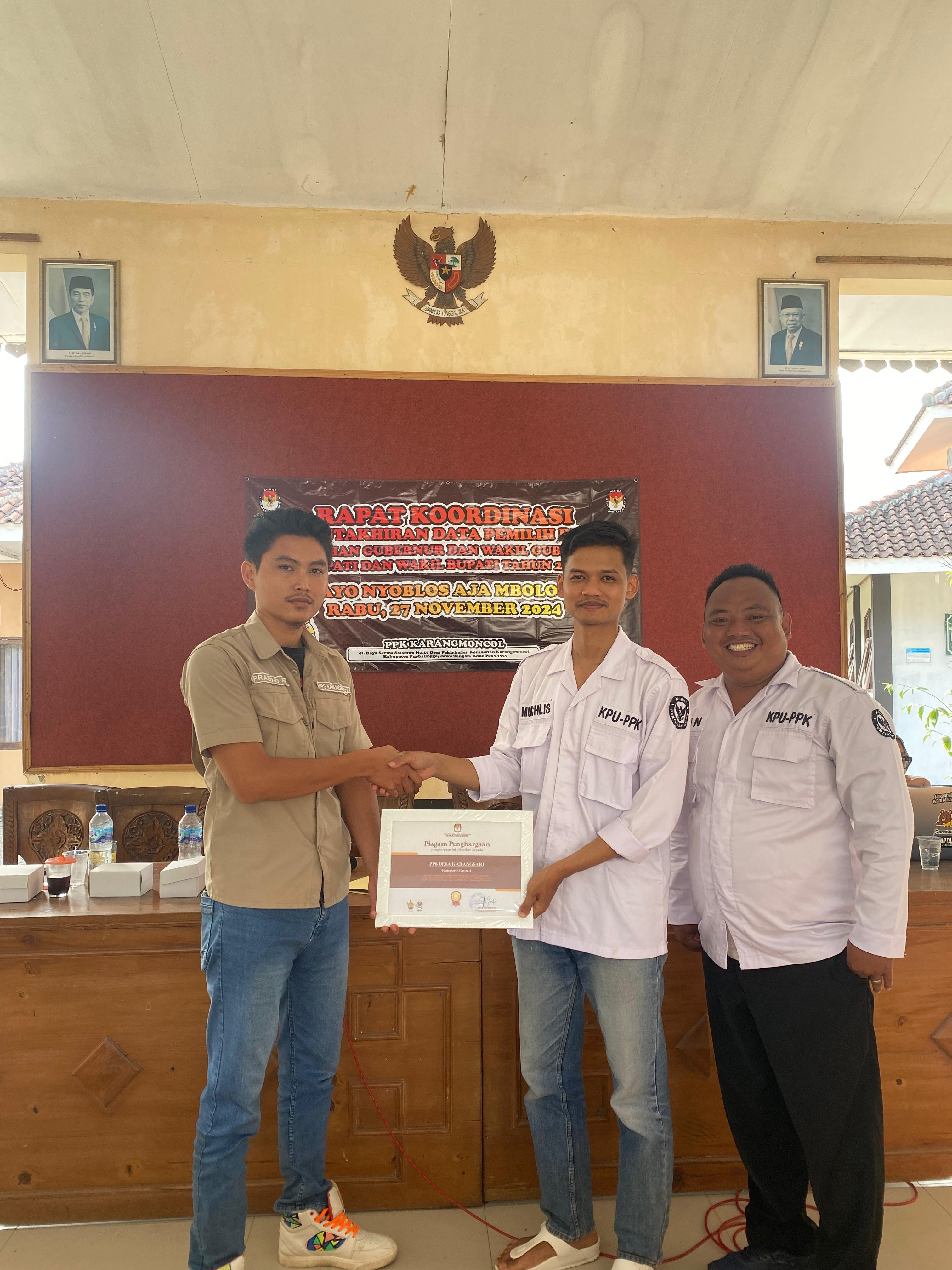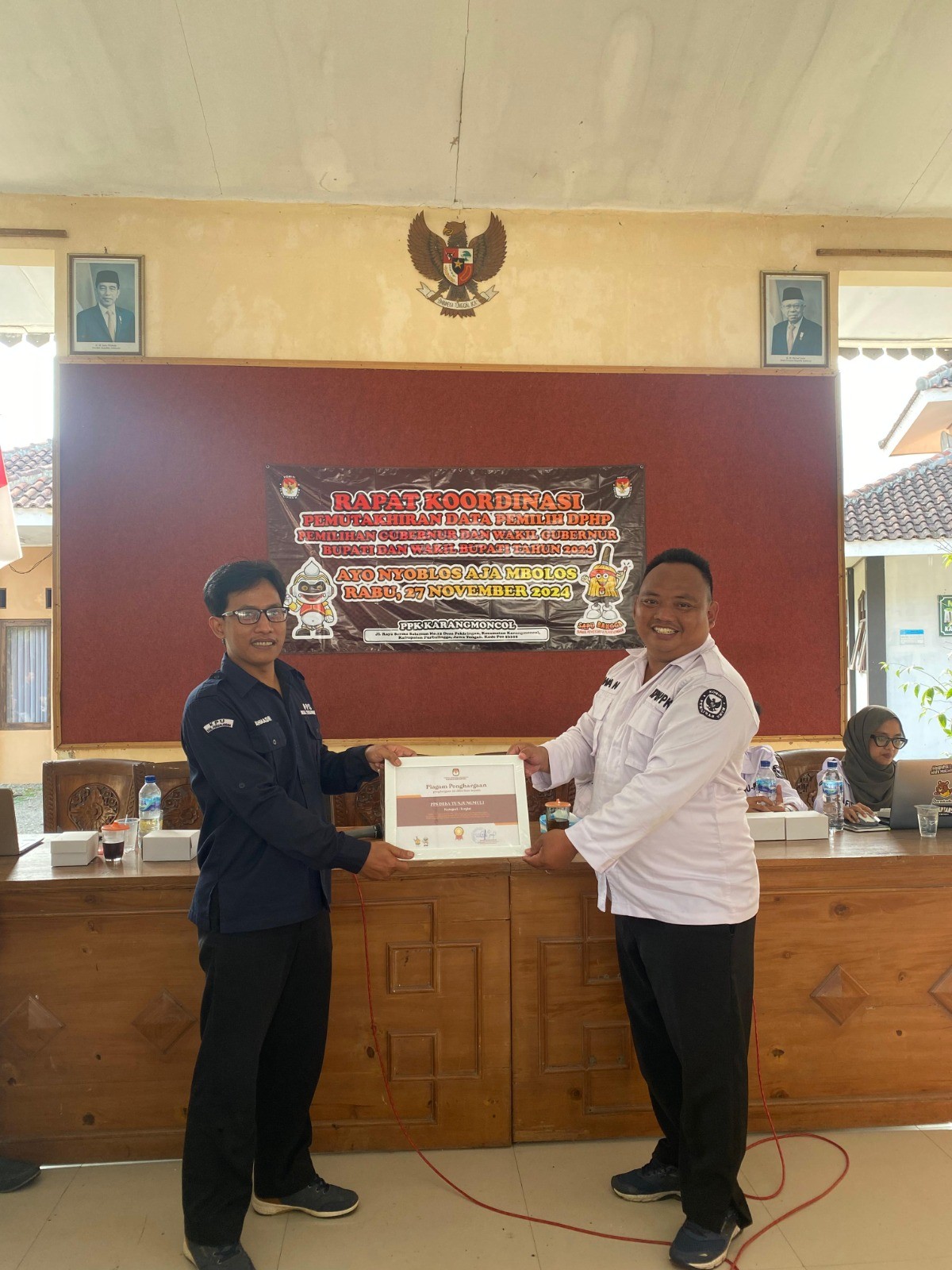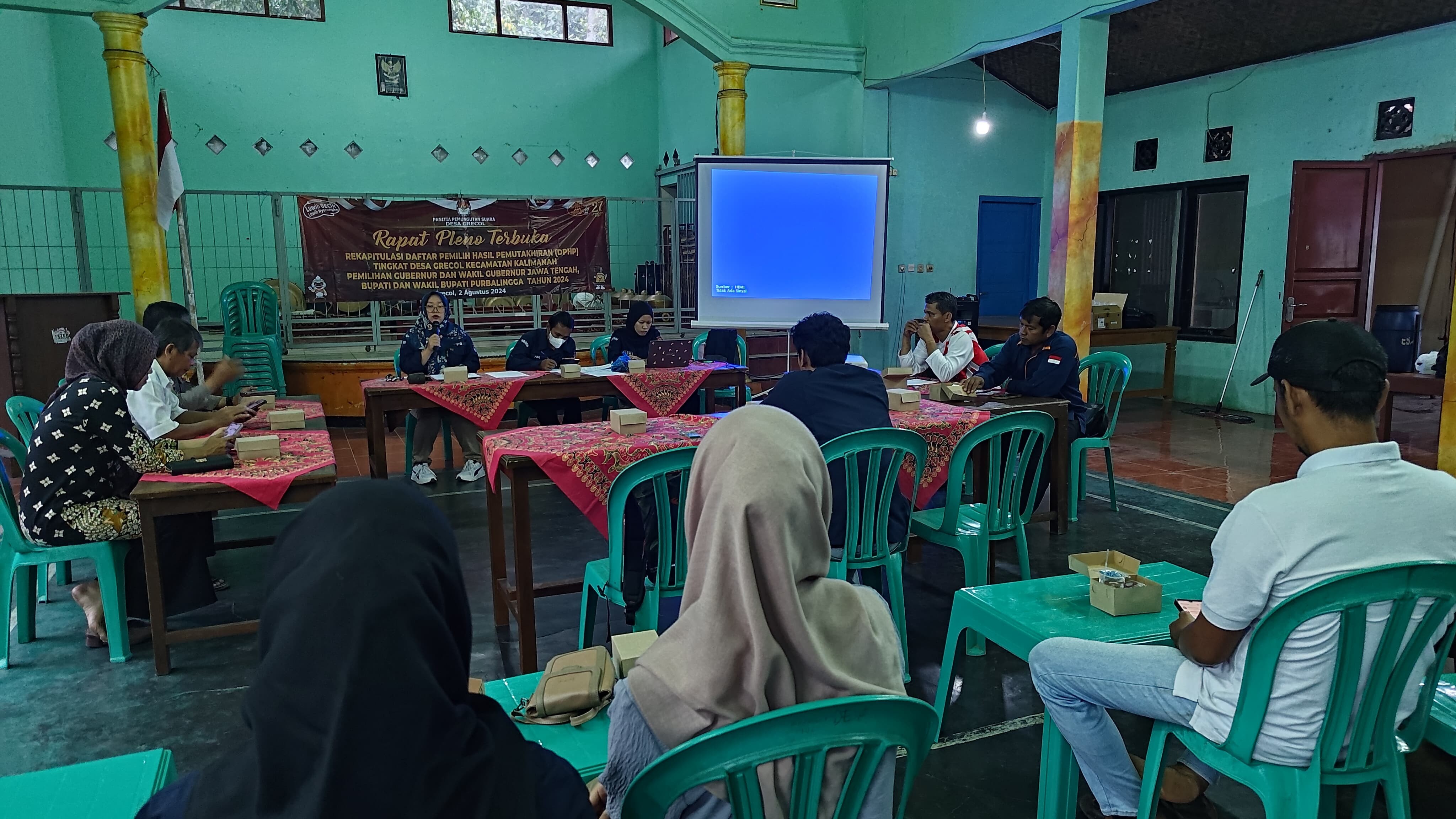 Rapat Pleno dimulai pada pukul 16.00 dan dihadiri oleh 3 PPS, 12 Pantarlih dari 6 TPS, PKD dan Pemdes,Babinsa, Bhabinkamtibmas, perwakilan Parpol serta dimonitoring oleh PPK. Setelah acara dibuka dilanjutkan oleh divisi datin, disampaikan oleh divisi datin untuk jumlah pemilih di Desa Grecol :