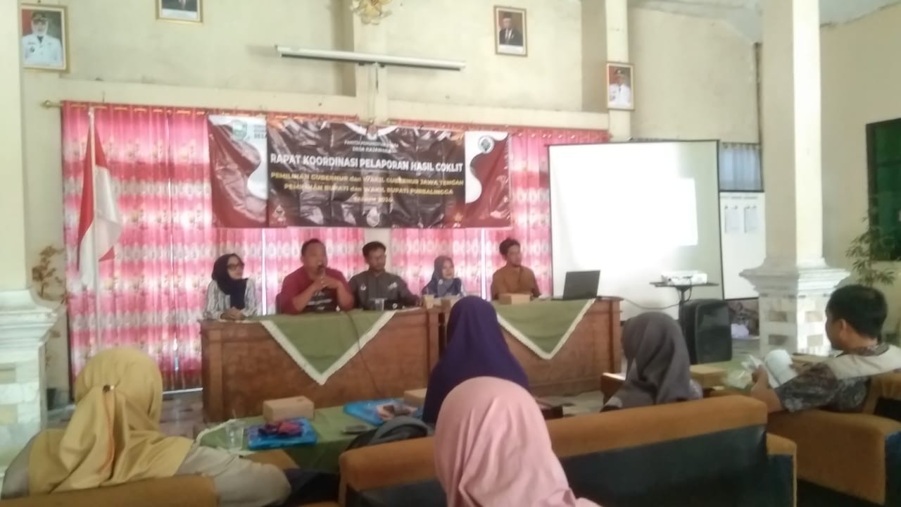 Terhitung mulai tanggal 24 Juni 2024, para Petugas Pemutakhiran Data Pemilih ( PPDP ) atau Pantarlih, sudah bekerja untuk melaksanakan pencocokan dan penelitian data pemilih yang dilakukan secara serentak se-Kabupaten Purbalingga.