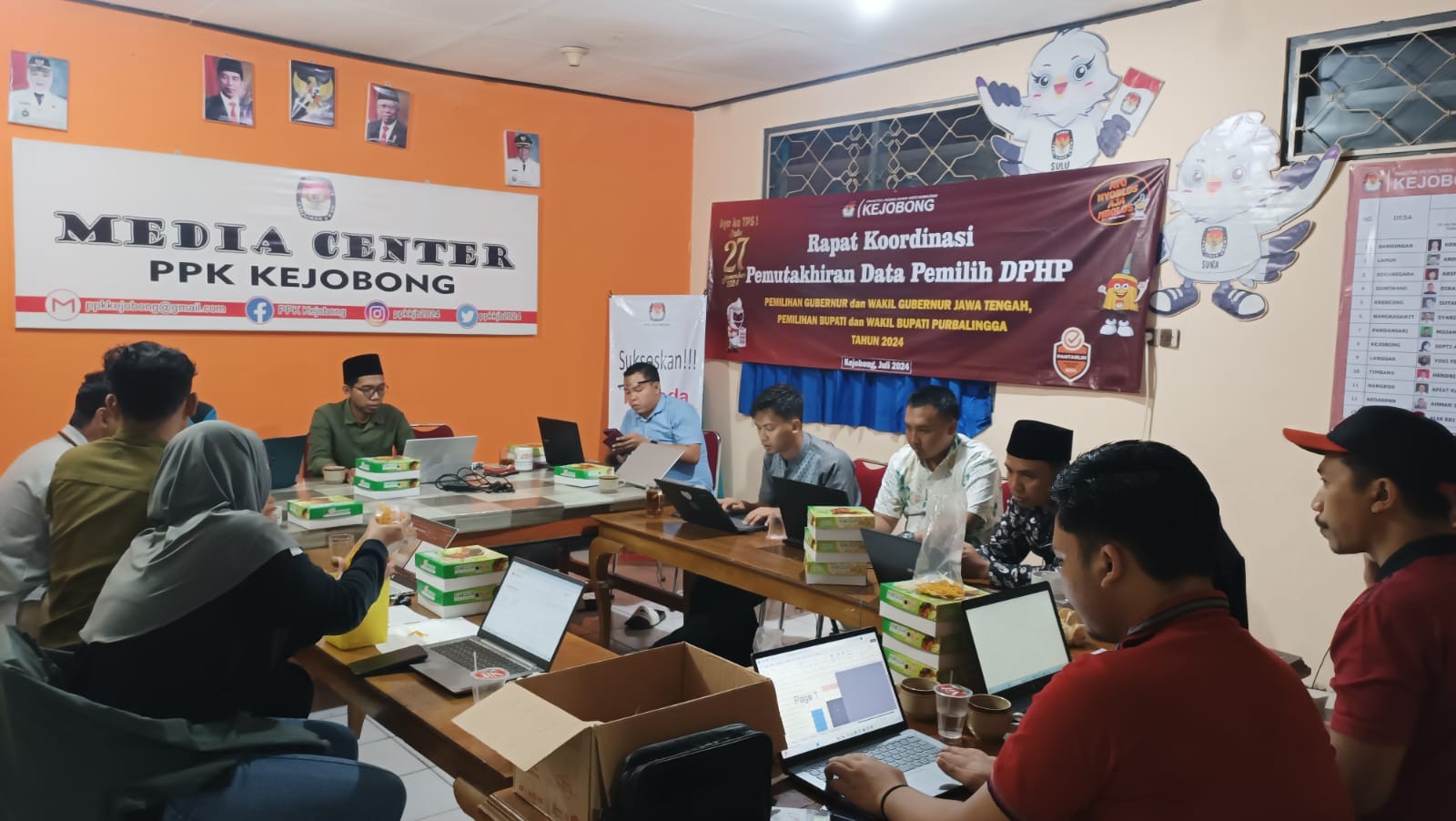 Kertanegara-Purbalingga (19/07/2024). PPK Kertanegara telah melaksanakan Rapat Koordinasi dengan PPS se Kecamatan Kertanegara guna menindaklanjuti rapat internal PPK (17/07/2024) yang membahas kegiatan penyelenggaraan tahapan Pilkada 2024 di ahir bulan Juli ini. Acara diawali dengan menyanyikan lagu Indonesia Raya sebagai bentuk rasa nasionalisme. Rapat koordinasi ini salah satunya membahas persiapan laporan ahir Petugas Pemutakhiran Data Pemilih (Pantarlih) yang sesuai SK masa kerjanya berahir sampai tanggal 24 Juli 2024. Meski kegiatan coklit di Kecamatan Kertanegara sudah di angka 100%, di minggu ke empat ini Pantarlih masih mempunyai tugas membantu PPS memelihara data sampai ahir masa kerja. Seperti yang disampaikan Ilham Rouf selaku ketua PPK Kertanegara pada saat memberikan sambutan “Meski kegiatan Coklit oleh pantarlih sudah 100% tapi kami harap jika ada pemilih pindah datang lengkap bersama adminduknya, Pantarlih bisa menambahkan ke Daftar Potensial Pemilih baik di manual maupun Ecoklit, begitu pun ketika ada pemilih yang TMS (Tidak memenuhi syarat) silahkan segera di eksekusi jika sudah ada data dukung”. Selain membahas laporan ahir pantarlih, dalam kesempatan ini juga membahas strategi sosialisasi mengingat target partisipasi di Kabupaten Purbalingga dalam Pilkada 2024 ini di angka 81%. Dengan strategi yang tepat mudah mudahan angka partisipasi akan sesuai yang diharapkan. Minhatul Aula selaku divisi Sosdiklih, Parmas dan SDM menyampaikan “ Salah satu strategi sosialisasi yang efektif di era digital sekarang ini adalah memanfaatkan medsos, membuat berita, video kompilasi dan lain sebagainya”. Selain menggunakan medsos untuk sosialisasi, di minggu ini PPK Kertanegara akan mengadakan sosialisasi lewat forum warga, khususnya di daerah yang partisipasinya rendah. Dengan demikian semoga partisipasi masyarakat dalam Pilkada 2024 khususnya di Kecamatan Kertanegara akan semakin meningkat dan sesuai dengan target yang diharapkan.