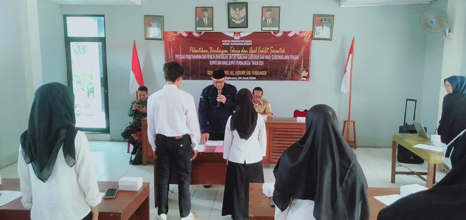 KALIKABONG - Panitia Pemungutan Suara (PPS) Kalikabong menerima laporan coklit Pemilihan Kepala Daerah (Pilkada) 2024 pada Jumat, (28/06/2024). Kegiatan pelaporan ini disampaikan oleh Petugas Pemutakhiran Data Pemilih (Pantarlih) kepada PPS Kalikabong. Sebanyak 16 petugas Pantarlih yang bekerja di 8 wilayah TPS telah melaporkan hasil pencocokan dan penelitian (coklit) kepada Panitia Pemungutan Suara (PPS) Kelurahan Kalikabong di Aula Kelurahan Kalikabong Coklit adalah salah satu kegiatan pemutakhiran data pemilih yang dilakukan dengan cara menemui pemilih secara langsung dan door to door oleh petugas Pemutakhiran Data Pemilih (Pantarlih) sesuai dengan wilayah kerjanya. Petugas Pantarlih merupakan petugas yang dibentuk oleh KPU Kabupaten/Kota melalui PPS untuk melakukan pendaftaran dan pemutakhiran data pemilih. Petugas Pantarlih memerlukan identitas diri pemilih yang berupa e-KTP, IKD maupun Kartu Keluarga (KK) sebagai bahan pencoklitan. Dalam masa tugasnya, petugas Pantarlih memiliki kewajiban untuk melaporkan hasil pencoklitan secara berkala, yaitu pada minggu ke-1, ke-2, ke-3 dan ke-4. Pada laporan minggu ke-1, petugas Pantarlih di Kelurahan Kalikabong telah melaporkan hasil coklit 47,72% kepada PPS Kelurahan Kalikabong. Jumlah pemilih tercoklit yang sesuai sebanyak 2.135 orang, jumlah data pemilih diterima minggu ke-1 sejumlah 2.169 orang, jumlah pemilih baru (potensial pemilih) sebanyak 14 orang, pemilih yang tidak memenuhi syarat 18 orang, jumlah pemilih yang memenuhi syarat 2.165 orang, jumlah data pemilih diperbaiki 16 orang, jumlah data pemilih disabilitas 3 orang. Dari data tersebut, maka prosentase coklit mingguan minggu ke-1 Kelurahan Kalikabong yaitu 47,72%. Sesuai imbauan dari PPK Kecamatan Kalimanah, untuk prosentase progres coklit pada minggu ke-1 sejumlah 40%, minggu ke-2 sejumlah 30%, minggu ke-3 sejumlah 30%, dan minggu ke-4 untuk menyelesaikan coklit jika terdapat kendala di minggu sebelumnya. PPS Kelurahan Kalikabong senantiasa memberikan arahan dan imbauan kepada petugas Pantarlih dalam menjalankan tugas dan wewenang agar bekerja dengan sungguh-sungguh, jujur, adil dan cermat, demi suksesnya Pemilihan Gubernur dan Wakil Gubernur Jawa Tengah, Bupati dan Wakil Bupati Purbalingga, untuk tegaknya demokrasi dan keadilan, serta mengutamakan kepentingan Negara Kesatuan Republik Indonesia, daripada kepentingan pribadi atau golongan.